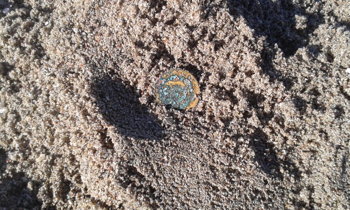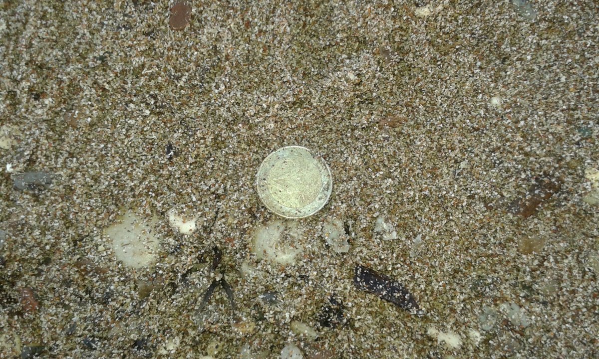 Сьогодні вихід був вдалішим, вчора цілий день був дощ, вітер і били великі хвилі. Копачів сьогодні було вдосталь, цікавий у них спосіб копання, йдуть по самій водній кромці, хвилі періодично їм омивають гумаки і вони виловлюють всі монетки які хвилі їм підкидають, я теж спробував так коли повертався до дому з копу - як результат 3,7Євро вже на пройденому 3-ма шукачами пляжі. із цікавого - обломок гільзи 1872 року , 50 пфенінгів 1950 року, 1/2 нових пенні Великобританія, ну і Югославія різна , Загалом по Євриках за 2-а виходи - 10,6