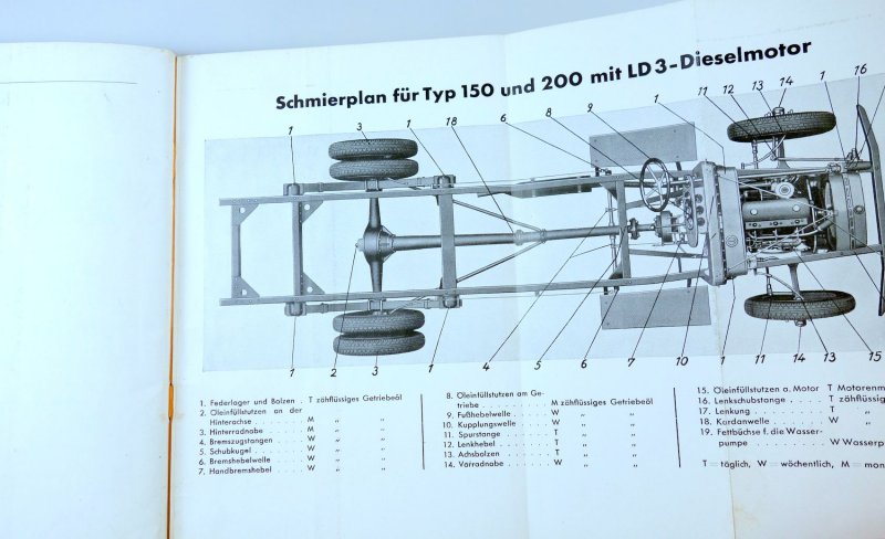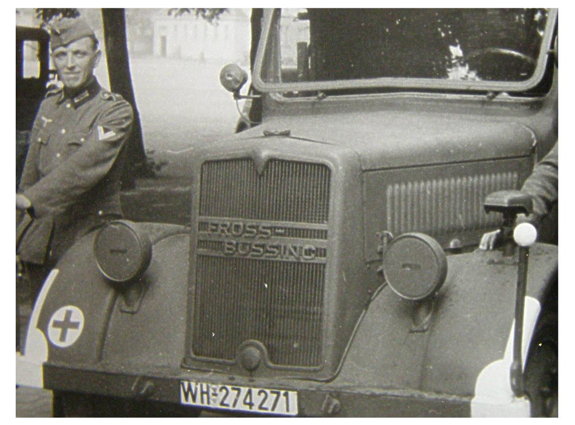 1.Büssing-NAG 150/200. Шесть точек крепления переднего колеса. 2.Büssing-NAG 250,275 или 300. Выштамповка на бампере - " 4 zyl ". 3.Büssing-NAG 650 (?).