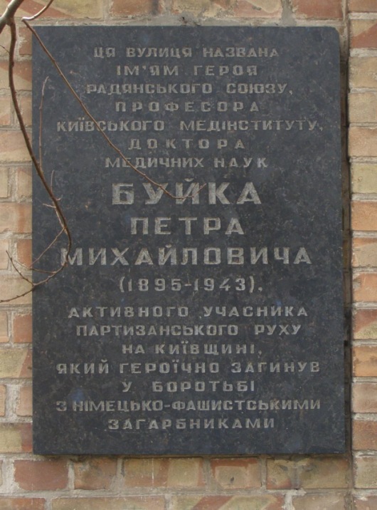 (19(31). 10. 1895, м. Більськ Гроднен. губ., нині м. Більськ Підляський, Польща – 15. 10. 1943, похов. у с. Томашівка Фастів. р-ну Київ. обл.) – акушер-гінеколог. Д-р мед. н. (1936), проф. (1938). Герой Рад. Союзу (1944, посмертно). Учасник воєн. дій 1918–20, 1-ї та 2-ї світ. воєн. Бойові нагороди. Брав участь у січн. зброй. повстанні 1918 проти ЦР у Києві. Закін. Київ. мед. ін-т (1922). У 1923–29 – голова Бердичів. ком-ту профспілки «Медсанпраця», зав. здороввідділу в Білій Церкві, гол. лікар лікарень Червоного Хреста в Білій Церкві та Люботині. Від 1930 – доц. Київ. мед. ін-ту; від 1931 – зав. каф. акушерства і гінекології Київ. стоматол. ін-ту; 1933–38 – один із засн. і дир. Київ. НДІ охорони материнства і дитинства, який носив 1950– 93 його ім’я (нині Ін-т педіатрії, акушерства та гінекології АМНУ); 1939–41 – зав. каф. акушерства і гінекології Київ. мед. ін-ту. Під час 2-ї світ. війни – хірург медсанбату; після поранення під м. Умань Черкас. обл. потрапив у полон, звідки втік. Працював хірургом у Фастів. рай. лікарні (від 1942). Був партизаном, урятував понад 1000 рад. громадян від вивезення на фашист. каторгу. Від липня 1943 очолював мед. частину партизан. загону. Спалений живцем нім. карателями у с. Ярошівка Фастів. р-ну, де встановлено пам’ятник. Основні напрями наук. досліджень: профілактика й лікування розривів промежини під час пологів, лікування міхурево-піхвових нориць. Запропонував метод фістулографії з гомотрансплантацією плаценти на ушитий дефект сечового міхура. На могилі Б. встановлено погруддя, його ім’ям названо вулиці в Києві та с. Томашівка; образ його відтворив Яків Баш у повісті «Професор Буйко» (К., 1946; 1953). Сжав кулаки, разрывая тяжкие путы, подпольщик-патриот бесстрашно смотрит в лицо врагу. Рядом в пламени его побратимы… Этот монумент установлен в селе Томашовка Киевской области на месте гибели отважного врача-подпольщика, Героя Советского Союза, профессора Петра Михайловича Буйко. В октябре 1943 года, оказывая помощь тяжело раненным партизанам, соратникам в борьбе с фашистскими оккупантами, он был схвачен гитлеровцами. После допросов фашисты заперли измученного врача в сарае вместе с заложниками — местными крестьянами. Среди них были и дети. Вокруг расположились охранные посты. Зная, что близится конец, полицаи и гестапо свирепствовали. В глубине помещения отыскалась лазейка. Доктору предлагали выбраться из ловушки, но, желая сохранить жизнь заложникам, оградить их от бессудной гибели за его побег, Петр Михайлович отказался от спасительной возможности. Оккупанты втащили профессора и еще двух крестьян в ближайший дом и сожгли заживо. А вскоре Киевщина была освобождена. В 1944 году Петру Михайловичу посмертно присвоили звание Героя Советского Союза. Это был первый Указ, подписанный М. И. Калининым, в котором возвеличивался подвиг защитника Отечества на временно захваченной германскими войсками нашей земле. Калинин сказал, что наш народ никогда не забудет имя этого славного представителя советской интеллигенции, нашедшего мужество и силы встать в ряды сопротивления, несмотря на ежедневную опасность быть схваченным врагом. Кто же он, Петр Михайлович Буйко, каков жизненный пролог горького часа? П. Буйко родился 19 октября 1895 года в Бельске, (нынешняя территория Польши), в украинской семье. В 1922 году, пройдя немалую трудовую и революционную школу, он окончил Киевский медицинский институт, из
