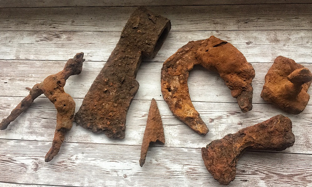 По нижніх предметах- шпора середньовічна, сокира лівіше 17 ст, далі обломаний зуб від косарки (теперішнє)