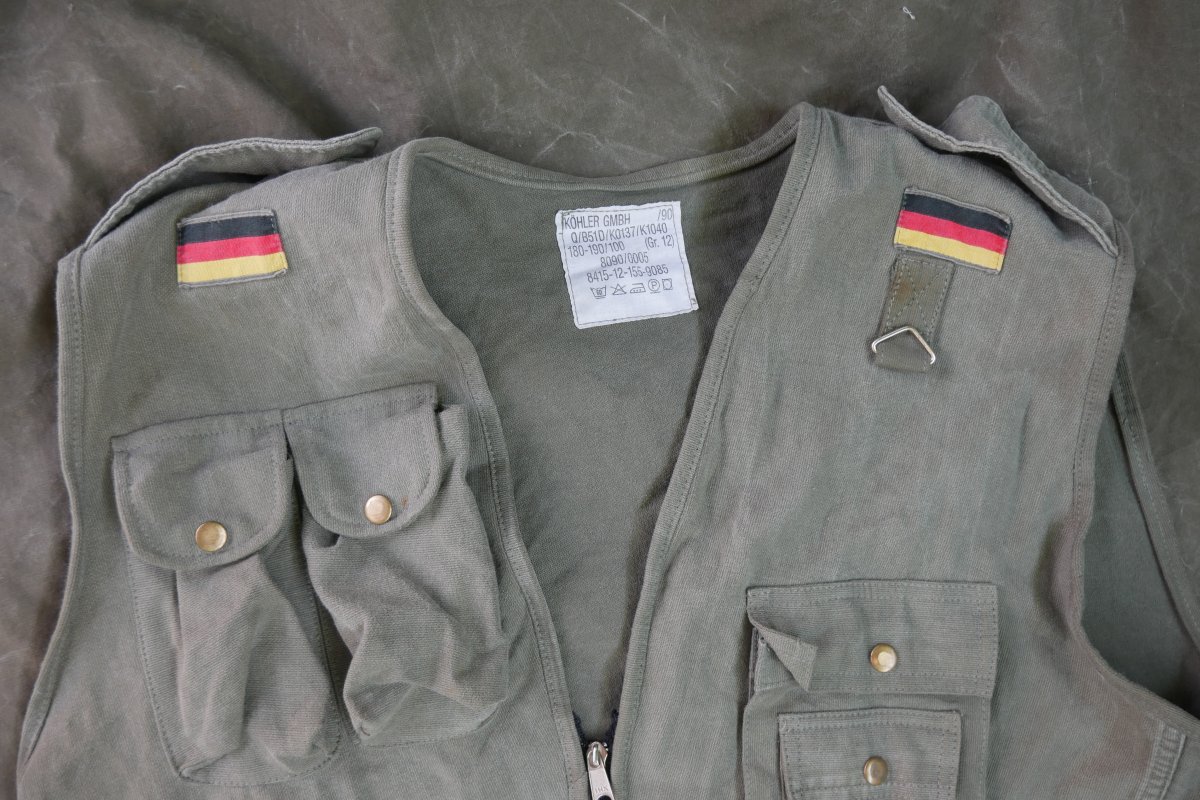 У меня на работе как раз такой китель, НСН-код 8415-12-155-9083 - практически совпадает. Думаю, этикетку на это место внутри перешили, перенесли - на моем кителе она внутри внутреннего кармана, так пришивают, чтобы от стирок надписи не размывались. В Бундесвере такой жилетки на оснащении точно не было. И национальные флажки так никто не носит.