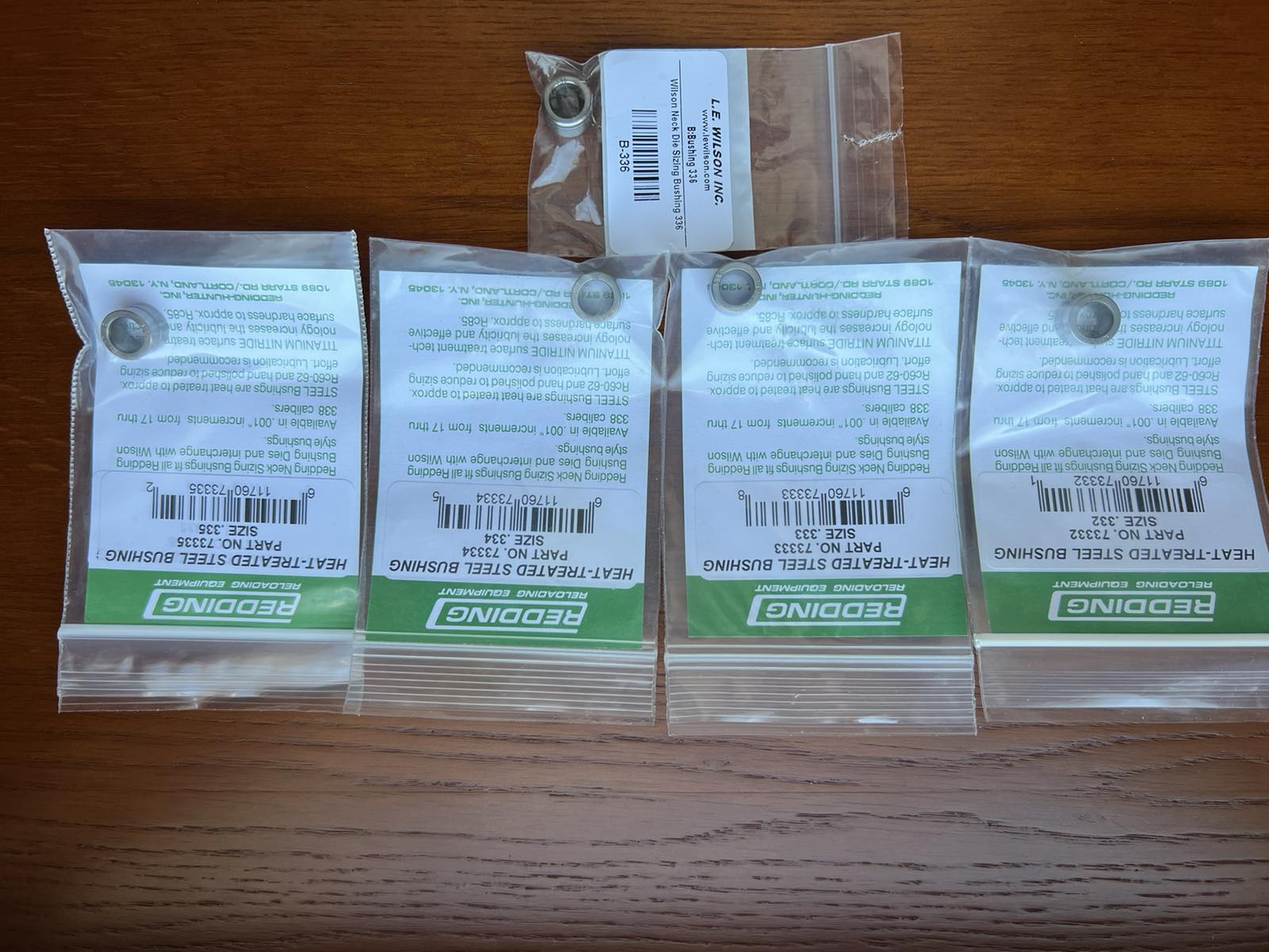 Продам бушинги для матрицы. В наличии Redding heat-treated steel bushing size: .332 .333 .334 .335 Цена 15дол. каждый по курсу на момент продажи . Отправка Новой Почтой за счёт покупателя. L.E. Wilson Neck Die Sizing Bushing - .336 Цена 20дол.