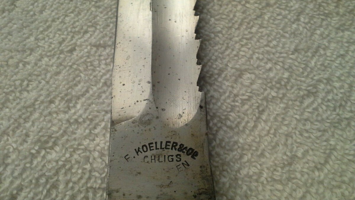Deutsche Maschinen fabrik A.G. Duisburg. На гарде клеймо "1". На шарике ножен с одной стороны стандартное клеймо военной приемки,с другой стороны шарика цифра "28" Остальные клейма стандартные в штатных местах,на обухе "W 17". Другие номера на ножнах и клине отсудствуют.