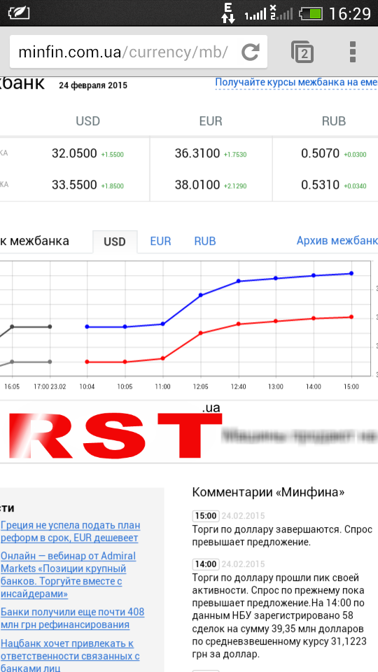 Скоро и к рублю будет 1 к 1... а потом и того меньше. Не понятно, кого давят санкциями а кому помогают. Такой курс могу объяснить тем, что доверия к власти больше нет, они показали свою бездарность и те, кто побогаче пытаются избавиться от бумаги (гривны), пока она хоть что-то стоит. Курс уже не остановить, пока всю бумагу не сольют... Или же станок не выключается и гривна дойдёт до своей себестоимости в печати. Берите кредиты в гривне, и покупайте товары, гривне уже труба...