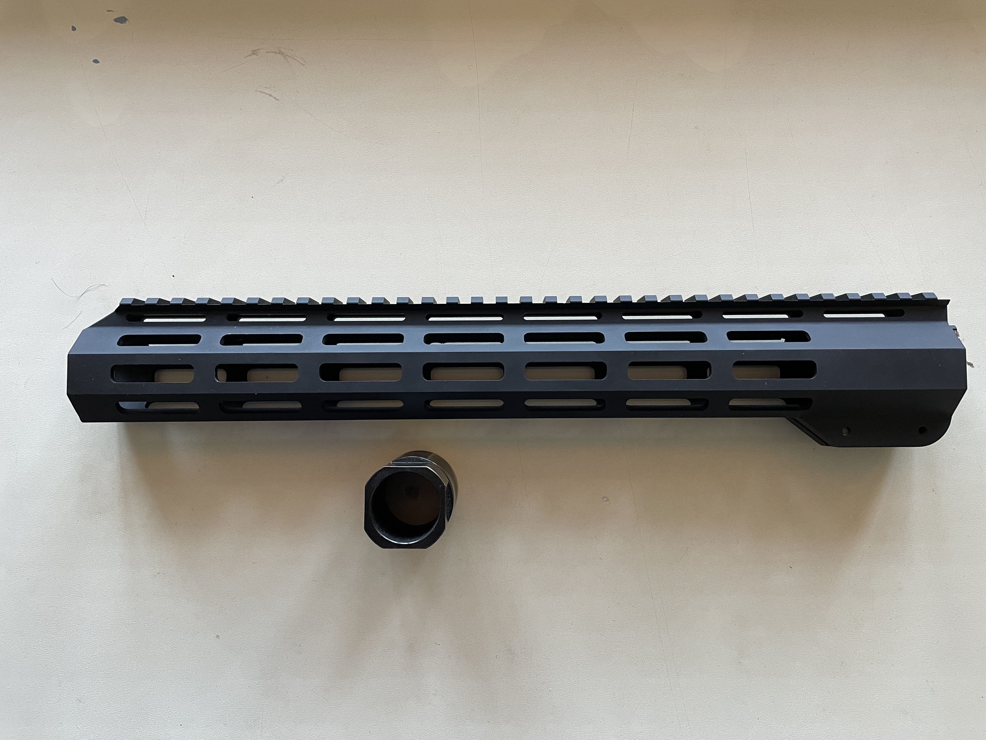 Продам цевье M-Lok, длина 13,7“. Идеально подойдет для ствола 14,5 и 16 дюймов. По кругу интерфейс M-Lok. На цевье присутствуют направляющие для точной фиксации на ресивере без надобности центровки цевья. Гайка под стандартный рожковый (газовый) ключ в комплекте. Крепится на трех винтах. Подходит для систем с низким газблоком. Снято с карабина Taurus T4. Длина 35 см Внутренний диаметр 3,3 см Цена: 7000₴ UPD: обновил фото и описание. Снизил цену до 6000₴