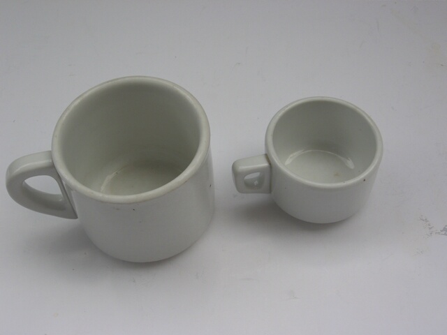 Массивная чайная чашка из толстостенного белого фарфора,(очень большого размера для сравнения прикрепил фото с обычной кофейной чашкой) изготовленная для офицерской столовой Вермахта. На донышке имеется подглазурное черное клеймо в виде имперского орла и название фирмы - "BAVARIA". Предмет в отличной сохранности, изготовлен в 1941 году.
