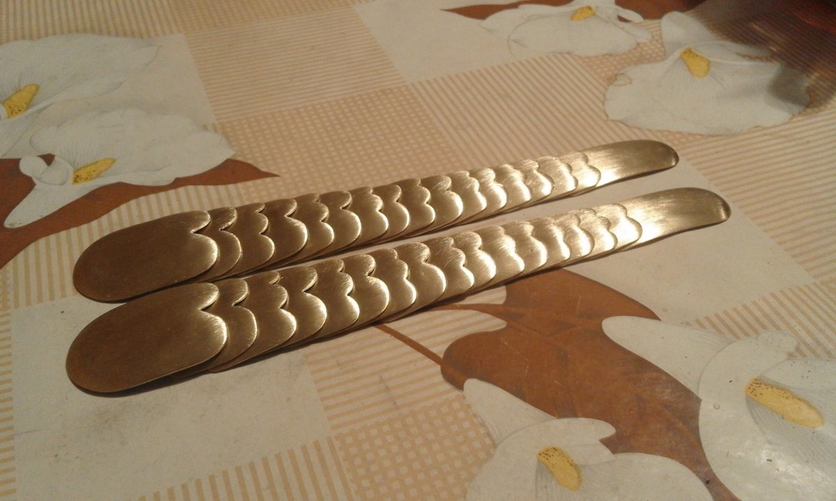 Принялся за подгонку чешуек. Пока не в чистовую. После того как очищу все чешуйки до такого же состояния, пойду на второй круг подгонки, уже в чистовую, потом полировка. Делаю паралельно две селёдки. Пока подогнал по несколько чешуек.