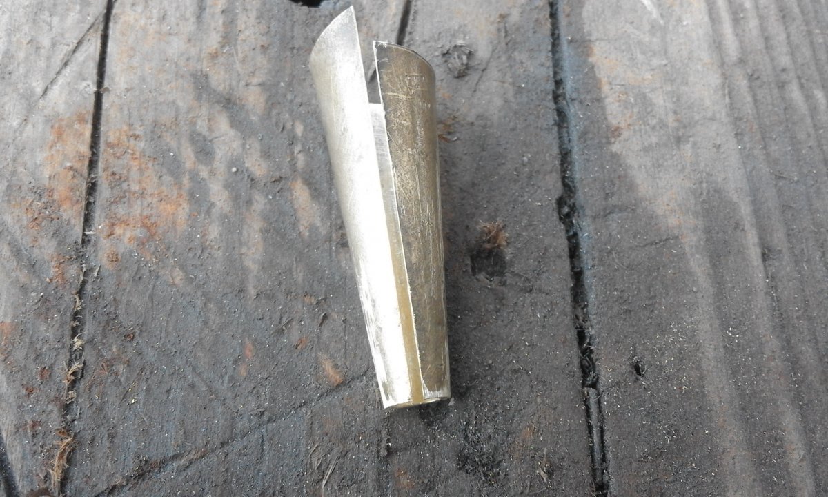 Зачистив добряче наждачкою,намотав дріт на паяльник щоб добре пролудити в середині трубки. Пролудив місця спайки. Виготовив кришичку на дно трубки, туго вставив. Нагрів трошки трубку та залив припою, тримає на всі 100. Зігнув кріплення. Буду рахувати що це робота якогось не відомого артелю за номером 663.