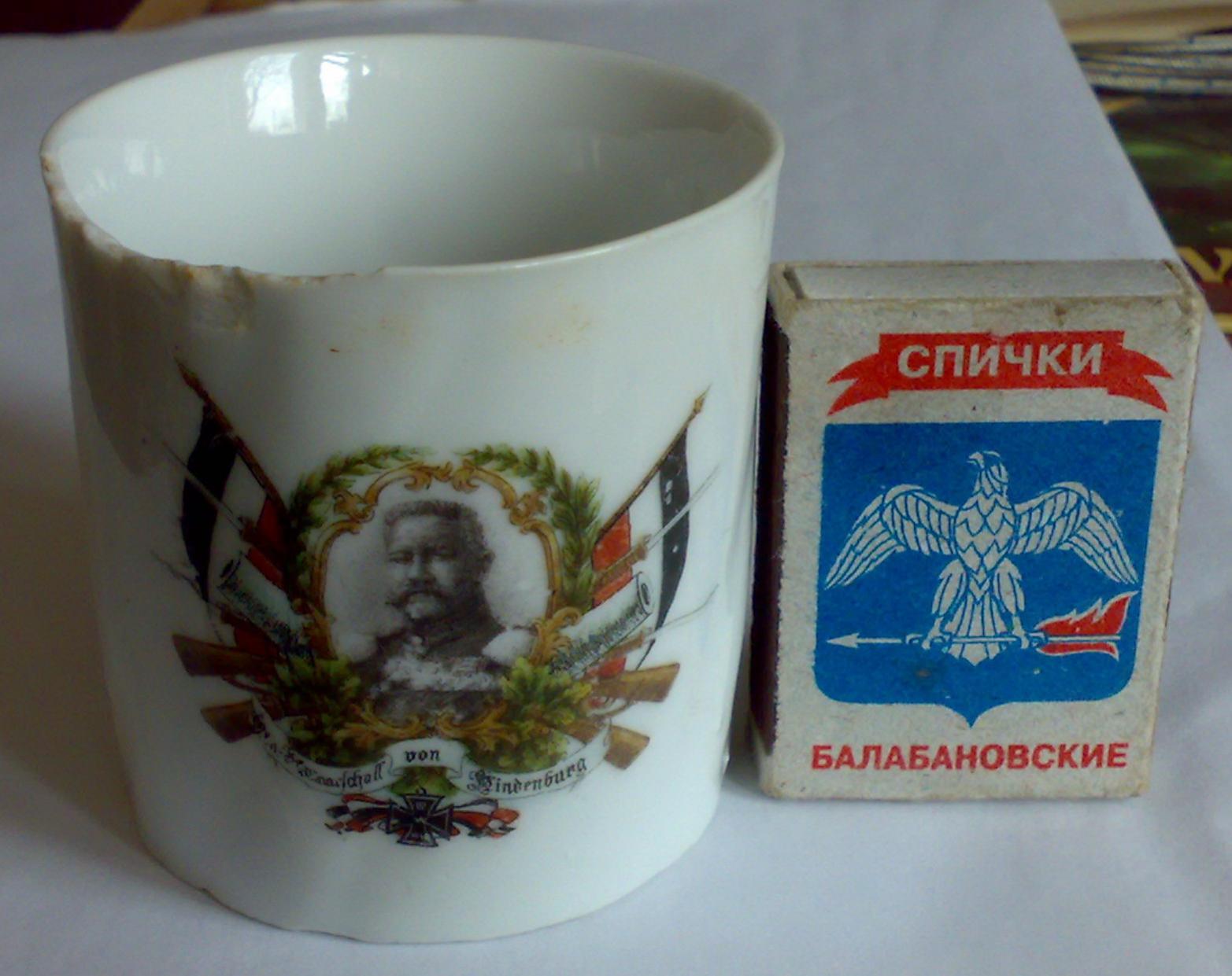 Вчера попалась такая чашка с картинкой.Находка по 1916-17 году,стало быть Пауль фон Гинденбург - начальник Генерального штаба. Сколько может стоить чашка ?