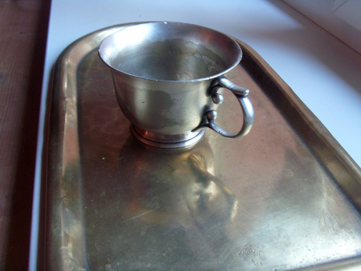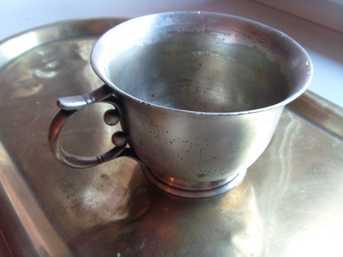 Добрый день уважаемые камрады. Прошу высказаться имеет ли этот предмет отношение к военному антиквариату ? Очень бы хотелось знать период использования и принадлежность клейма. Вес чашки-256 грамм,высота 7 см,верхний диаметр 10,5 см. С уважением.