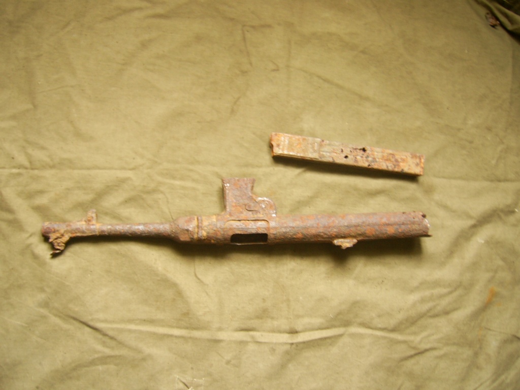 Состояние по фото. Отражатель целый, защелка магазина разработана, мушка целая. Узел крепления ствола не разбирал, естественно, сухари(полукольца) - целые. Металл ствольной коробки крепкий. Три отверстия в стволе - по фото. Цена 300 грн.