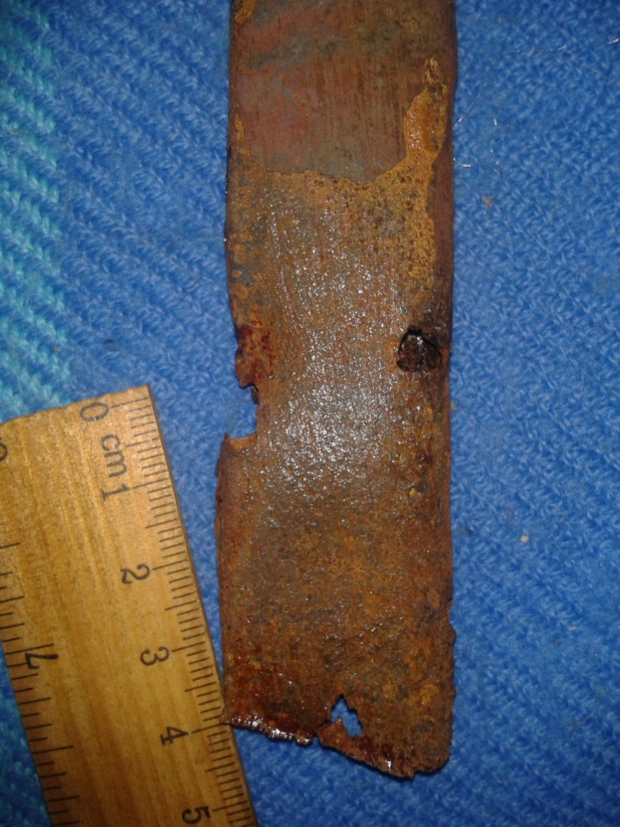 Просто от сабли..При размере, который у Вашего предмета, идентифицировать обломок нереально, да и в прнципе нет необходимости.