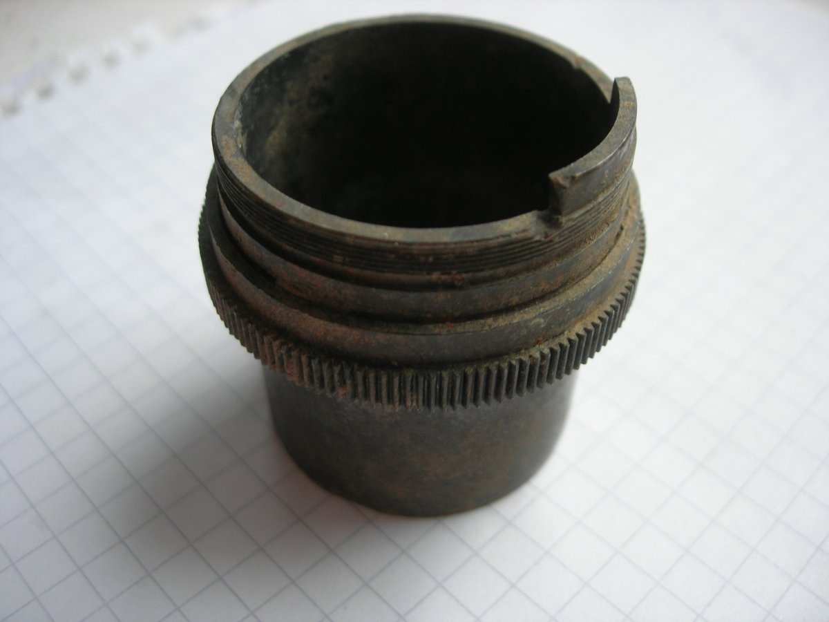 Приветствую, камрады. Подскажите, плс, что это и от чего? Материал - латунь, звонкая. Размеры: длина - 37мм, наружный диамерт трубки - 34мм, внутренний - 32мм Сопутка по 41г. Деталюха целая, не мятая.