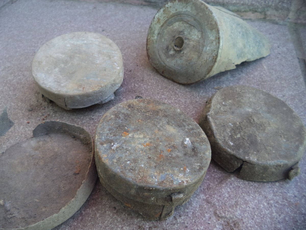 Регулярно попадають такі елементи вроді як від гранати, інколи з залишками осколочних елементів як в рдултовках.Підкажіть від чого.Метал вроді як цинк.