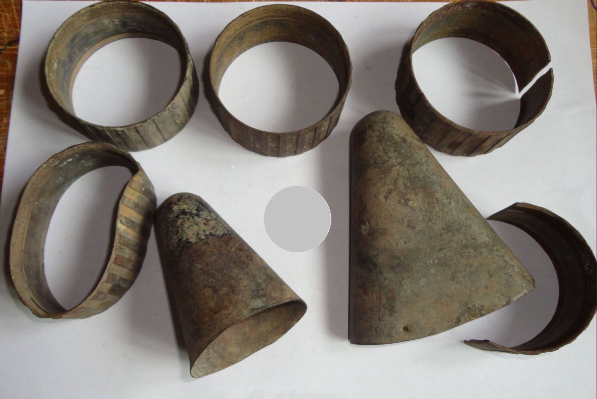 Вітаю!Знайшлись такі предмети,біля п.Бугу,на протилежних околицях села,історія якого мабуть була не простою...По першому,в принципі визначився-ПСВ,Дно міни бомбомета т.з. ГР,тут посилання на інфу http://www.diorama.ru/forum/viewtopic.php?f=10&t=11345&start=700 По ДСВ-захисні ковпаки на дистанційну трубку,це до боєкомплекту зеніної гармати..?Внутрішній диаметр кілець-62мм., різьба ліва.На останній загальній світлині,зірочка не обговорюється,вона відсутня. Ну і цікаво,чи буде попит на такі речі?Буду вдячний за думки.