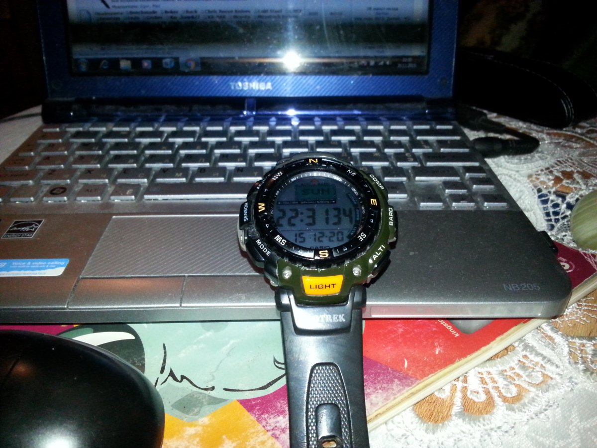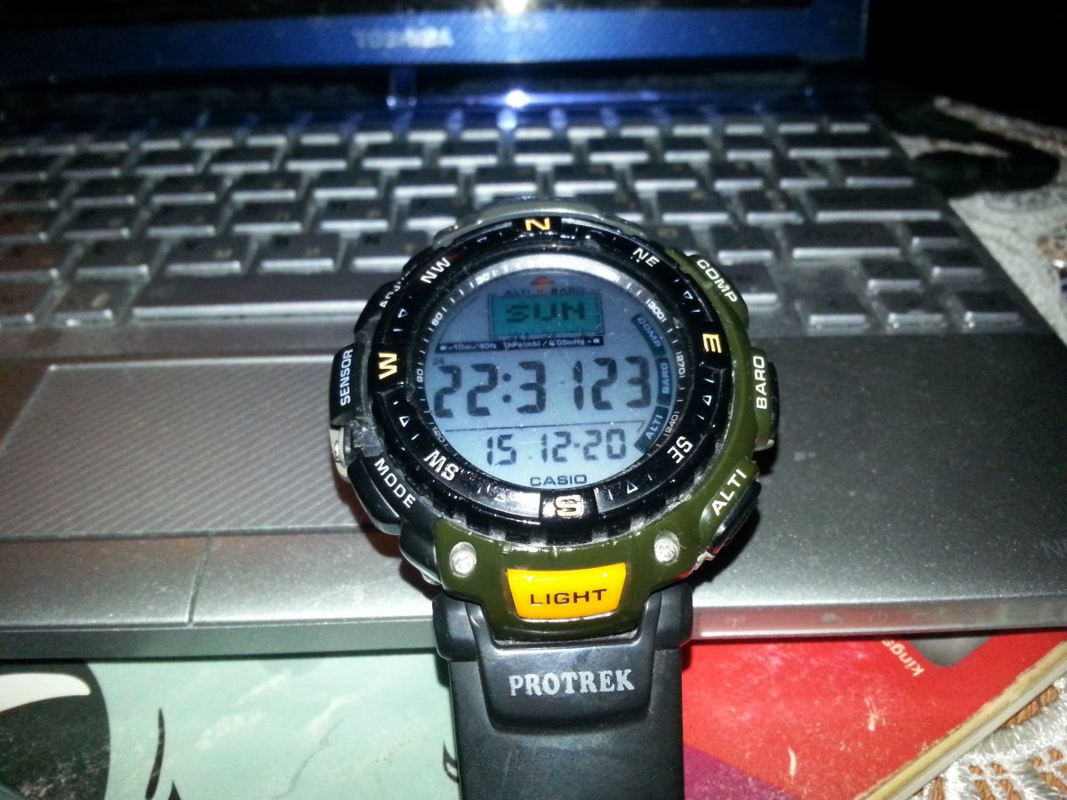 Часы Casio Pro Trek PRG-40-3V в состоянии б.у. Бренд: Casio Модель: PRG-40-3V Коллекция: Pro Trek Страна производитель: Япония Фабрика сборки: Япония Пол: мужские Тип механизма: кварцевый Тип крепления: ремешок Материал крепления: каучук Цвет циферблата: серый ЭЛЕКТРОЛЮМИНЕСЦЕНТНАЯ АВТОПОДСВЕТКА, КОМПАС, АЛЬТИМЕТР, БАРОМЕТР, ТЕРМОМЕТР, 1-100-с сек. секундомер, 5 будильников, календарь, водонепроницаемость 100м Корпус в состоянии на 3+, есть сколы пластика корпуса в районе левого сенсора, на работоспособность не влияет. Все датчики рабочие, работают без сбоев. Подсветка работает. Идут очень точно. Примерно полгода назад произведена замена батареек. Ремешок в хорошем состоянии, трещин и порывов нет. Доп. фото работы функционала на экране по требованию покупателя. Цена 1000 грн. на карту Приватбанка Отправка НП за мой счет.