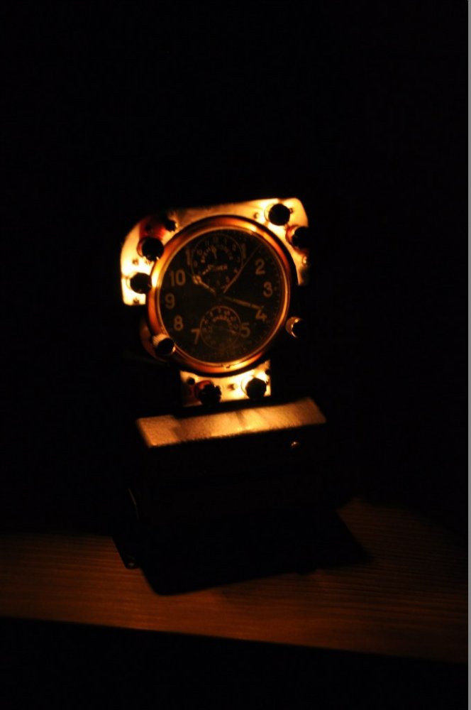 А что до подставки...Я с Вами полностью согласен .Когда часы новые ...да и не новые мне например очень не хочется закрывать и боковую и заднюю часть чем либо.Мне нравится видеть изделие военного назначения не закрытое деревом либо камнем ,а если уж и делать подставку то из частей приборной панели.. реальной .Либо частей техники если конечно это возможно ,на которой сей прибор был установлен .или на крайний случай что то их огр стекла .Вроде есть конструкции интересные .но сквозь них видны часы целиком .Эти часы это не только цифер .Но и корпус в целом .мое мнение хочется в красивой подставке то купить лучше настольную молнию псевдотанковую