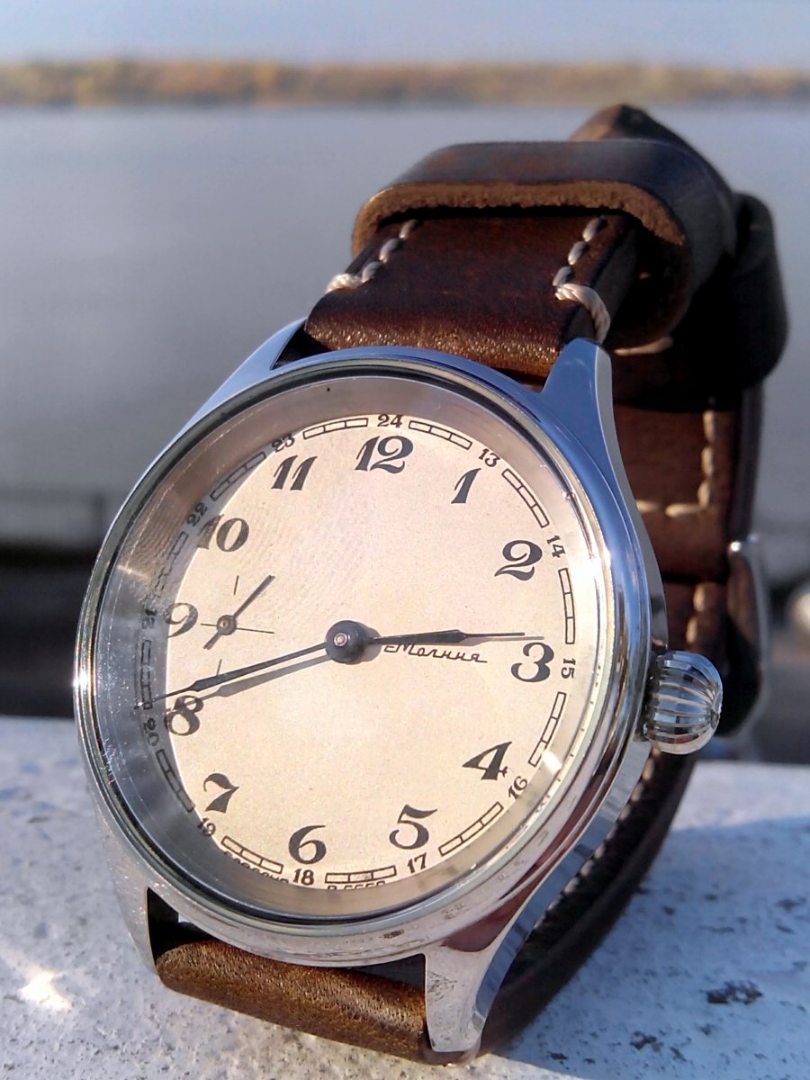 Здравствуйте. Попались такие часы ЗИМ состояние вроде нормальное,но как то прилипла минутная стрелка к стеклу изнутри!Заинтересовал механизм ЧК-6 1950 года!У меня есть механизм от "Молнии" тоже ЧК-6 и тоже 1950 года,(хотел сделать наручные часы,потом забросил,а теперь вспомнил и наверное сделаю.)Так эти механизмы отличаются -это нормально,и что по этому поводу можете сказать? Спасибо. С уважением. P.S.-Если у кого то есть наручный корпус для механизма "молния" ЧК-6-пишите в л.с. Нужен не брутальный,а элегантный что-ли корпус.