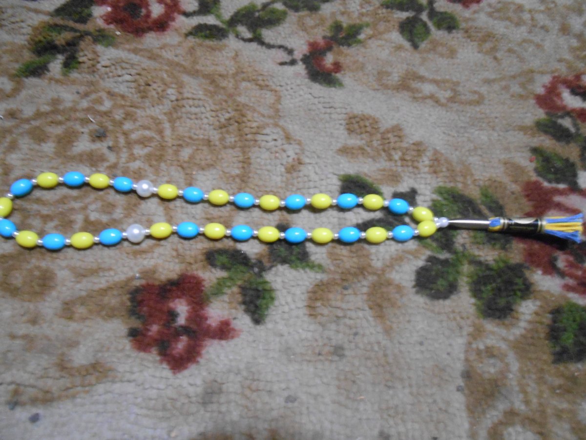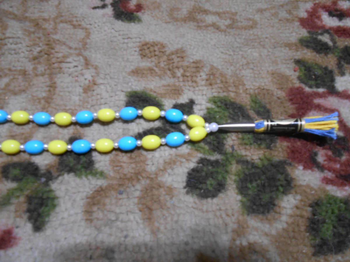 ЧЧётки ннадо? 350гр. Украинский флаг ,патриотика!Шнур,вощёный капрон 1мм.Бусины твёрдый цветной пластик ,разделители керамический жемчуг ,окончание ,,гуру,, мельхиор ,,арисака,,нить мулине.