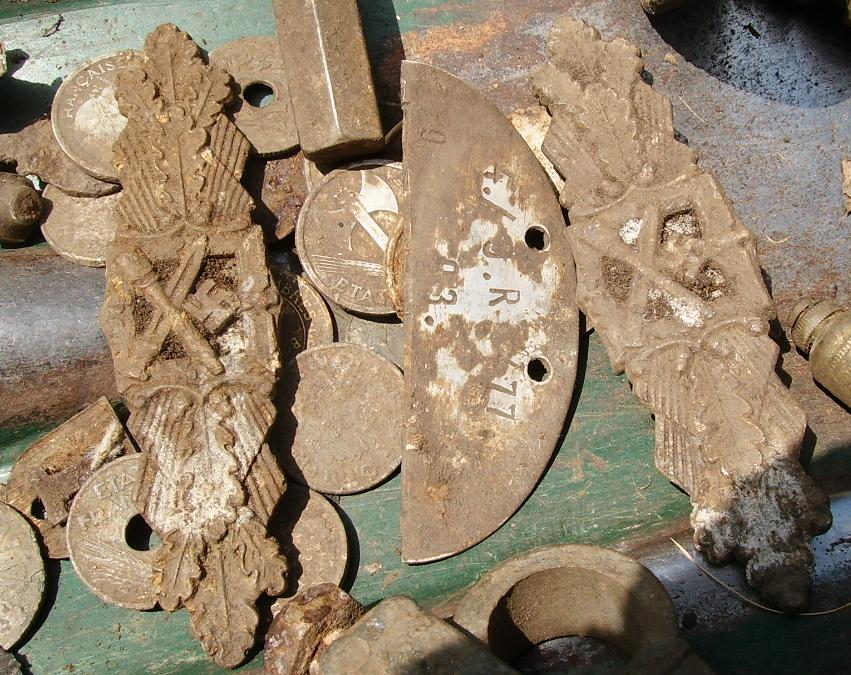Ответ: Чегото накопал.... Еще могли и местные аборигены после войны посдирать с кителей и карманов всякую мелочевку дабы его использовать в домашнем хозяйстве, да и любое снаряжение как каски - для кур, бачки - под солидол, и т.д.