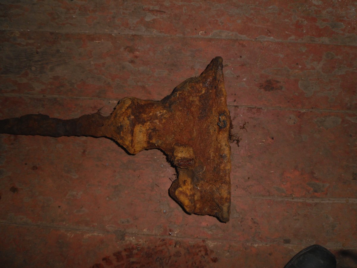 Попался вот такой рычаг. На старом высохшем болоте. Сначала думал, что это рычаг стояночного тормоза с ЗиЛ-130. Но он намного старше. Да и форма не такая. Думал ЗиС- но тоже не похоже.