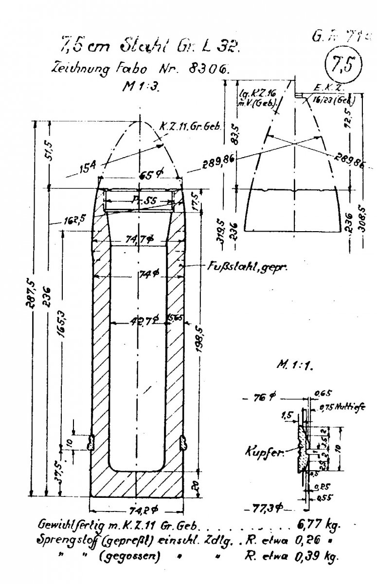 Переглянув декілька схем 75мм німців, середній діаметр болванки 74.4(без пояска)