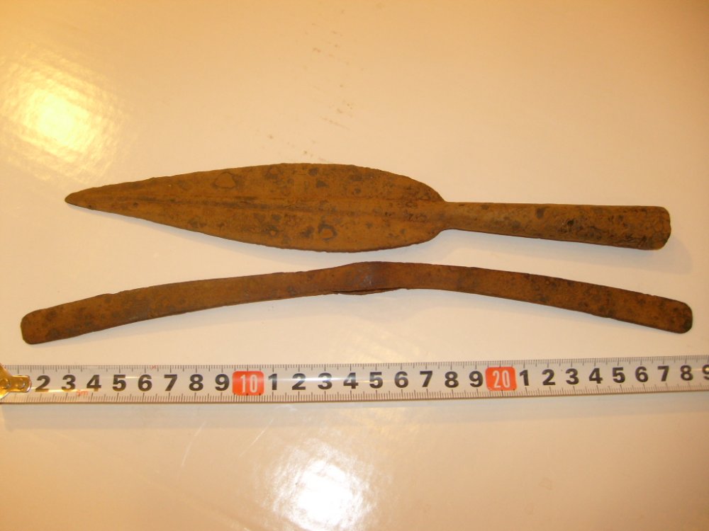 Камрады, спасибо за мнения, я таких не встречал и найти не смог, поэтому интересно обсуждение. Идентичные наконечники находятся, только в бронзе, вот фото из интернета для сравнения: Если кого-то заинтересовал наборчик - выставил на продажу одним лотом http://auction.violity.com/1017918-toporik-i-kope-arhaichnye-skify