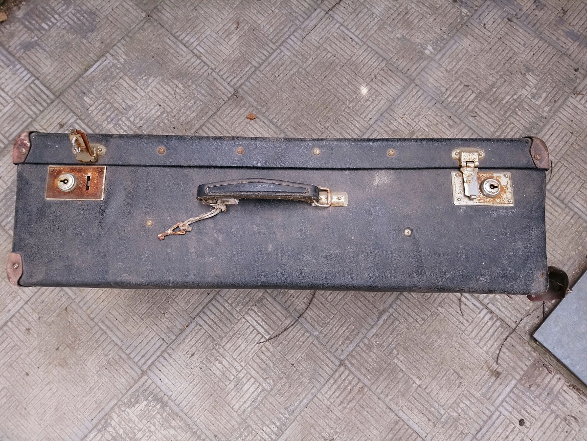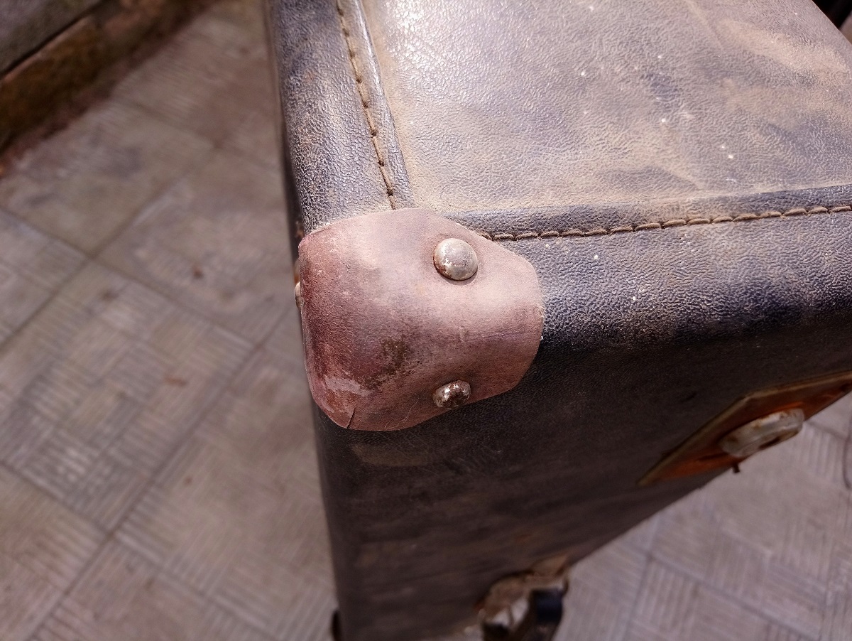 Приветствую. Нашел на чердаке такой чемодан. Интересно какого периода он и будет ли интересен кому? На бирке дату не смог разобрать. А так обшивка целая, не мыл пока. Уголки или из кожи или из чего то типа картона. Внутри ремешки как новые, ими не пользовались.