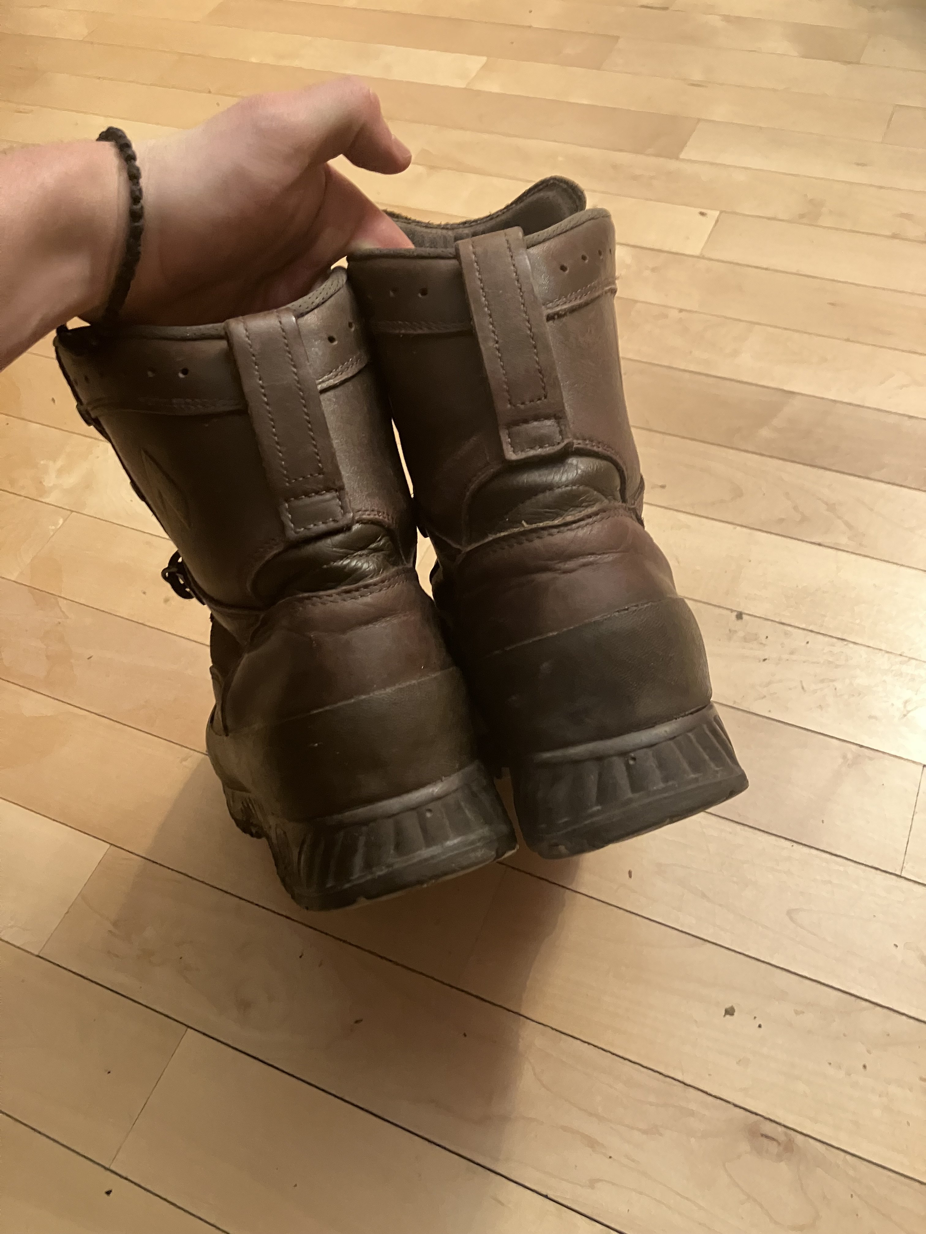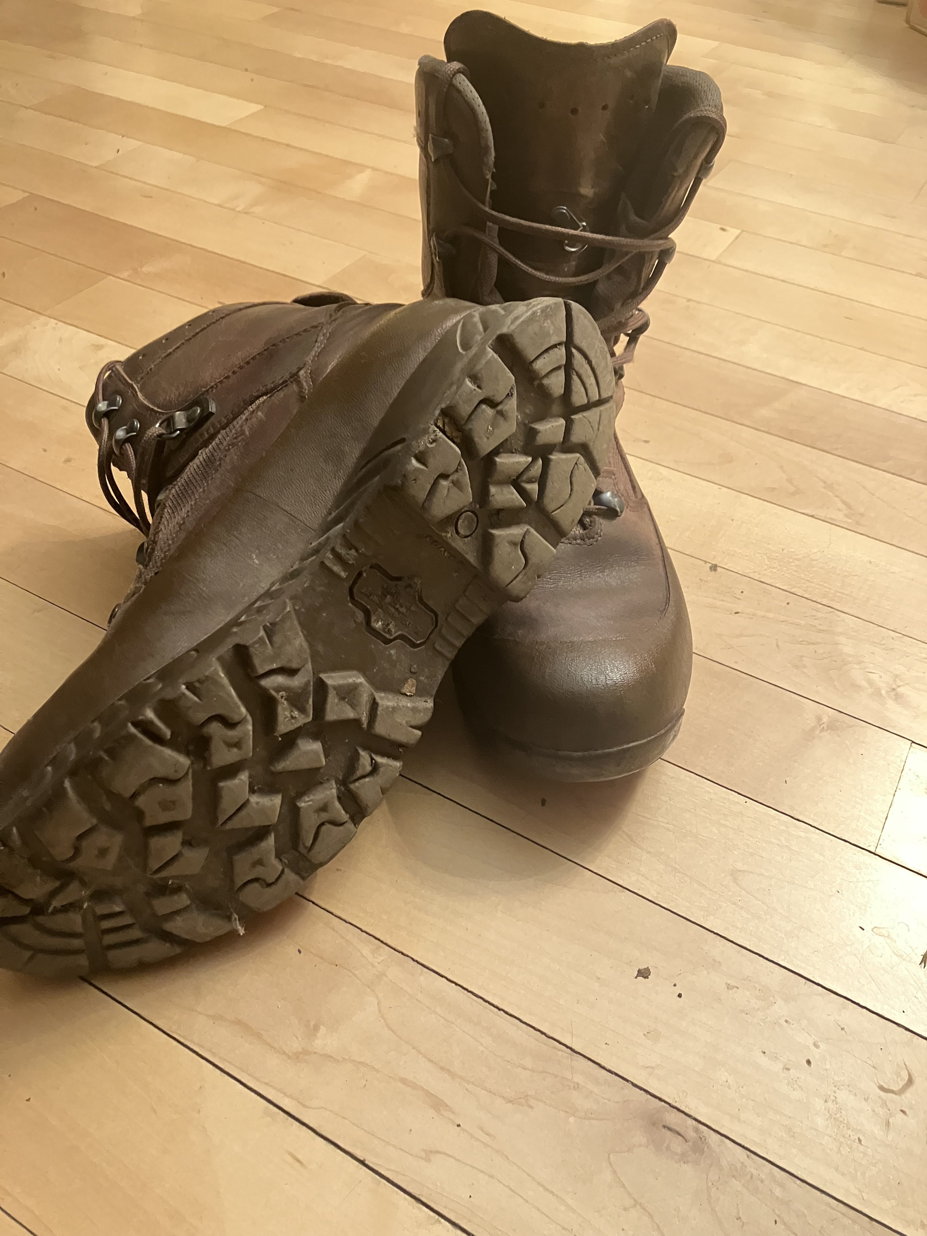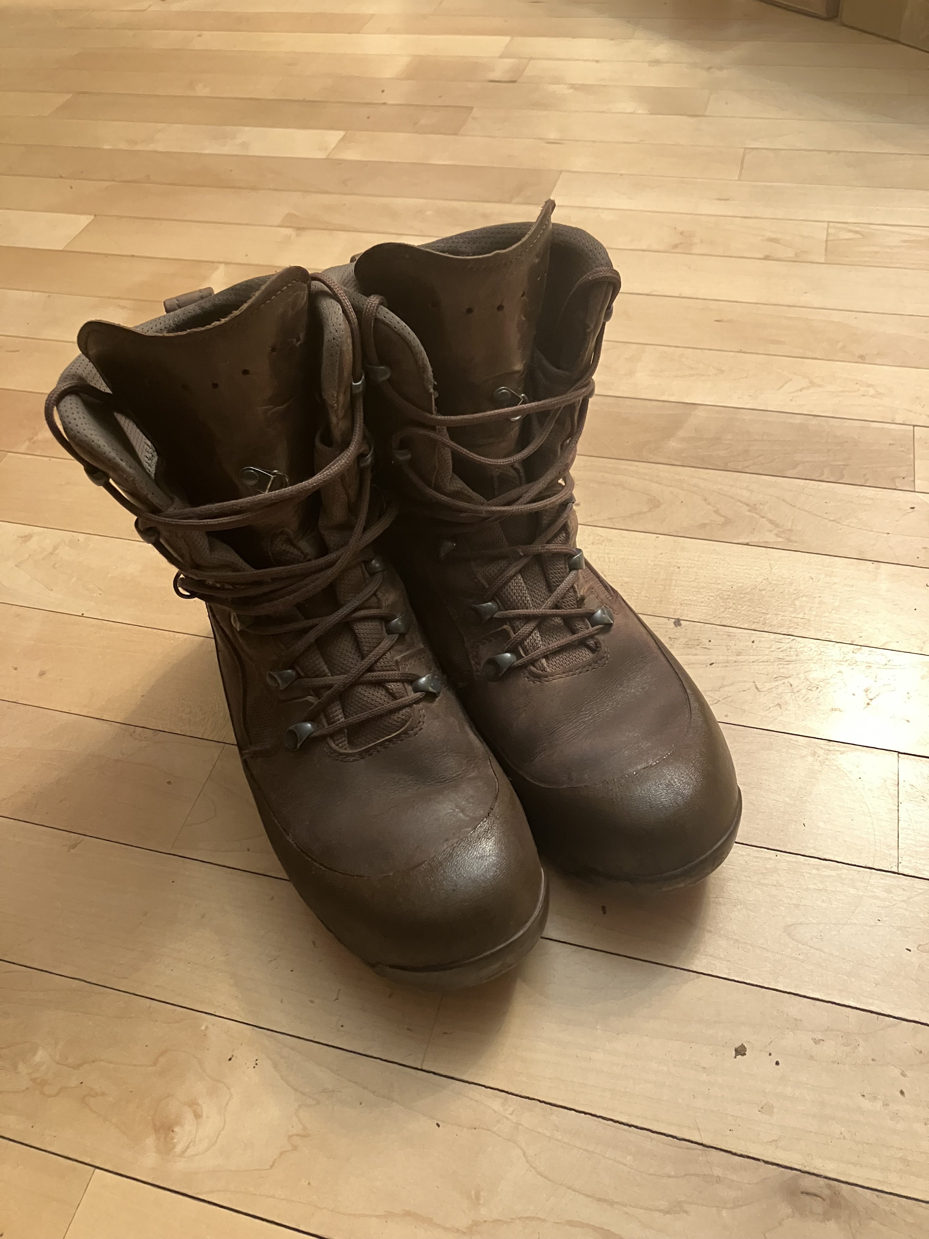 Вітаю! Пропоную вашій увазі Черевики Haix Gore-Tex, Boots Combat High Liability Brown. В гарному стані, без слідів зносу, міцні та надійні черевики, та вигорає колір шкіри. Розмір 10М, наш 44-44.5, по устілці ~ 287 мм. Ціна - 1500. Виробляються фірмою HAIX на замовлення армії Великобританії. Матеріал верху - комбінований: м'яка еластична шкіра (замша) і міцні, зносостійкі текстильні вставки. Гідрофобна технологія обробки шкіри (спеціальний спосіб просочення шкіри, завдяки якому взуття стає водонепроникним і водночас легко очищається). Спеціальна обробка, що дає змогу шкірі "дихати". Товщина шкіри: 2,4 - 2,6 мм. Підкладка - GORE-TEX® Performance (4-шаровий) зі зносостійким підкладковим матеріалом, водонепроникний, дихаючий. Оптимальний кліматичний комфорт за умов зміни умов. Система Haix® Climate System - це кліматична система для виведення випарів. Що не дасть потіти Вашим ногам! Устілка - анатомічна вкладна устілка (змінна), високе поглинання вологи, швидко сохне. Підошва - двошарова: поліуретан / гума. Профіль (черевик окантований широким гумовим рантом заввишки 3 см.) підходить для дорожніх і бездорожних умов. Антистатична. Стійка до впливу масла, бензину. Нековзна, зносостійка. Гума, стійка до холоду. Не залишає слідів (не малює). PU-амортизація забезпечує високий опір ковзанню. Спеціальна конструкція забезпечує правильний перекат стопи під час ходьби. Хороші ізоляційні властивості від холоду та спеки.