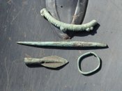 Все одним лотом, без дерибану. Для зручності предмети розділив на дві кучі, одні більш- менш впізнавані ( дріт, корки, і гільзи) , друга менш ідентифіковані .