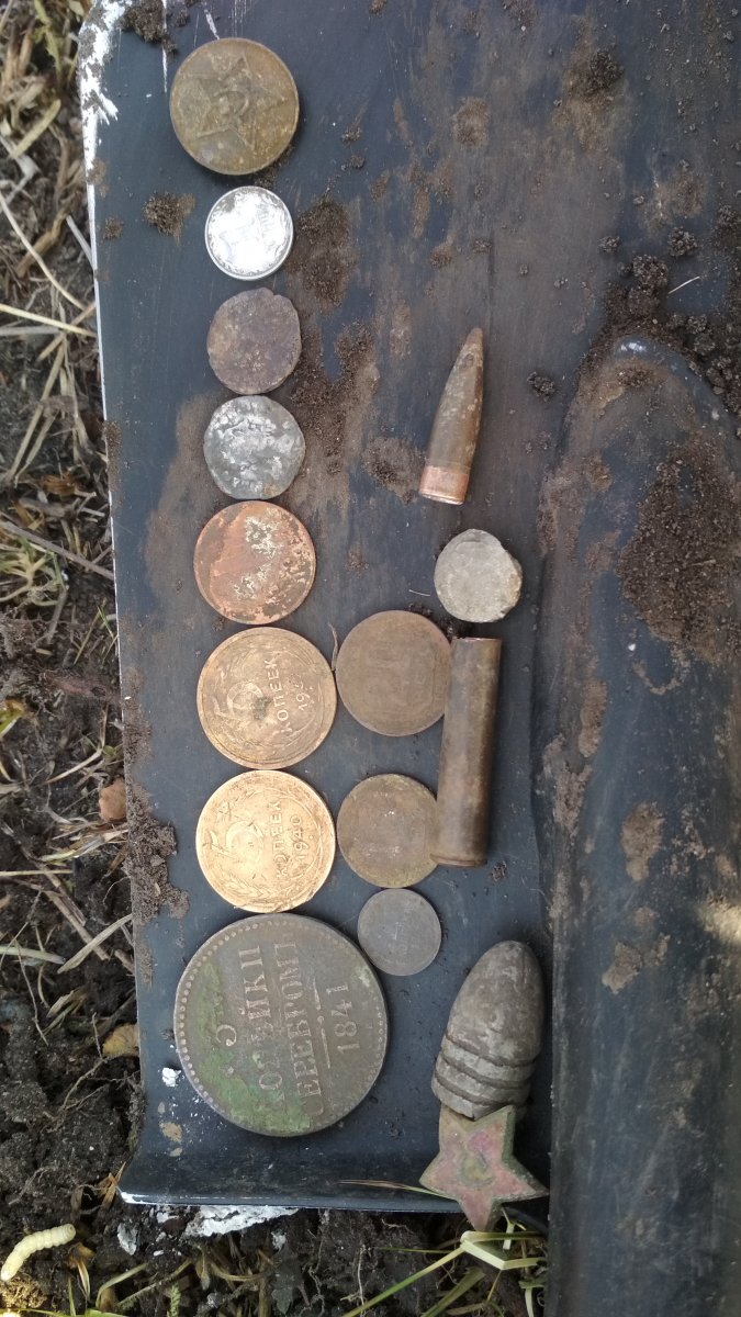 Чем больше камрадов сидят дома, тем больше поднимем. Черниговская область. Старые дороги шуберта с. носовки. За два выезда по 3 часа. Пули, кокарда вроде ркка.3 денарика. 1 дукат. Пару довоенных советов, пара послереформы. 3 коп 1841. 1 коп 1841. 1 коп 1840. 1 коп 1881 вроде.. ещё чето.. не фоткал.. место копаное перекопаное. Все находки штык, штык+. Прибор квазар, фильтр вери слоу, проводка медленная. Главное зделать зацеп интересной цели на быстрой, а там уже баловаться настройками и под разными углами чесать местность... Но то уже такое кто как хочет так и др.. , у каждого своя тактика. Стаж сезон, по ходу копа и находок подтачиваем матчасть...