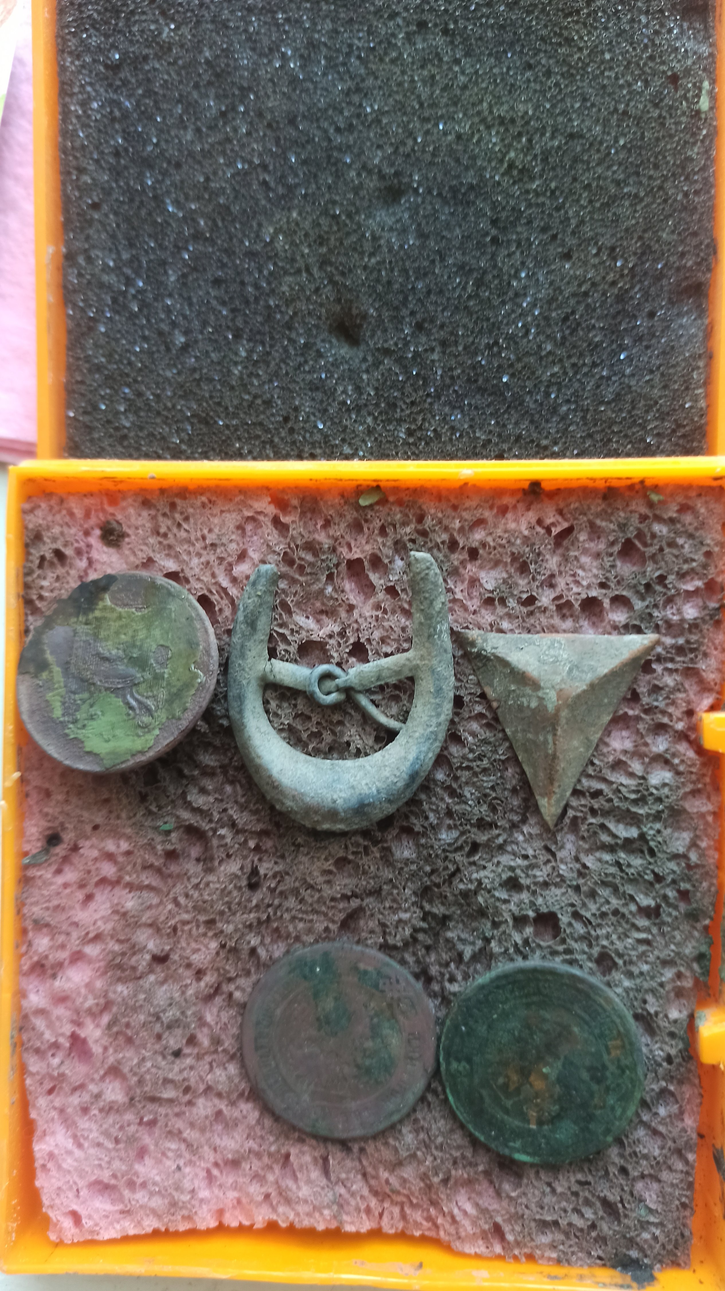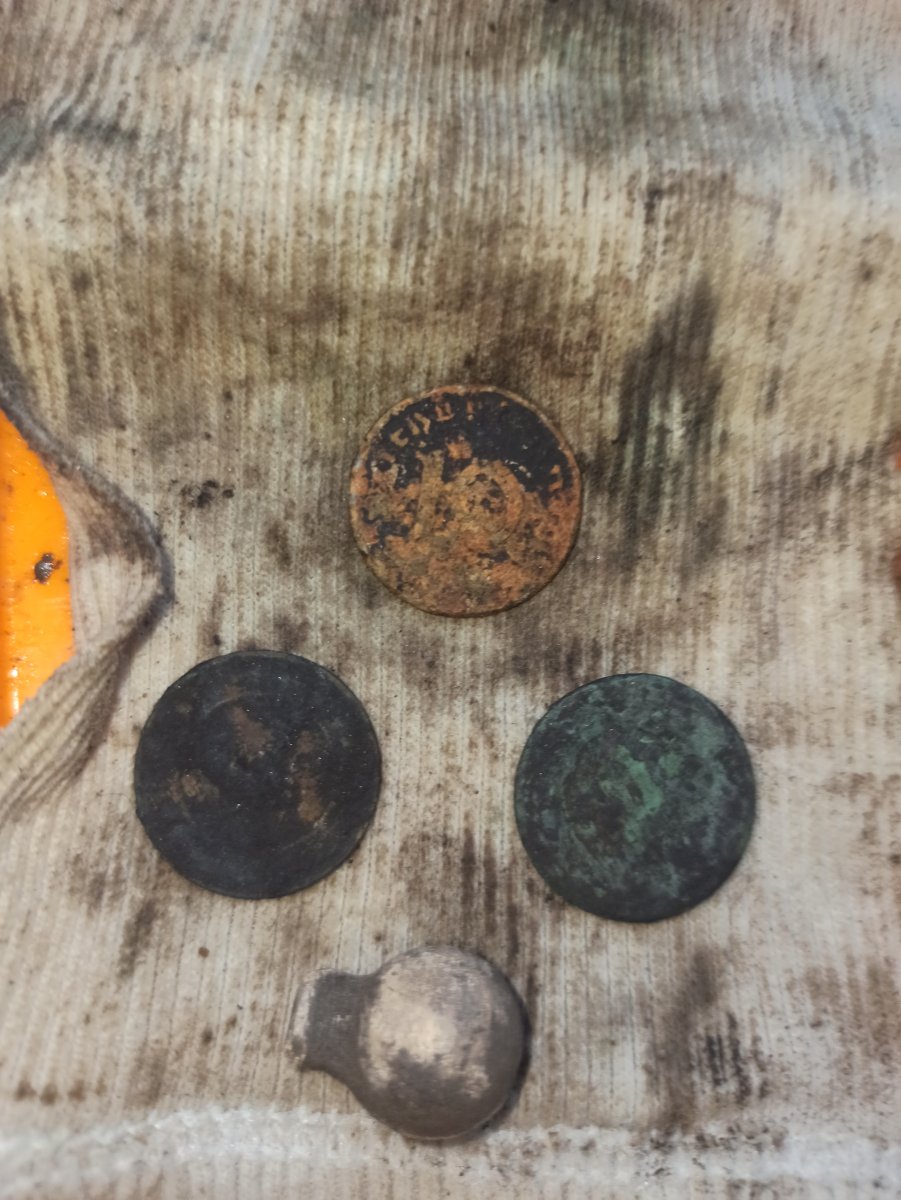 Доброго всім вечора. Теж ходив, але слабовато. Це за пару днів. Був один кошель но не фоткав. Шість монет, шість хрестиків и ножик складний ржавий в хлам. До чистки, и після. Всім гарних знахідок.