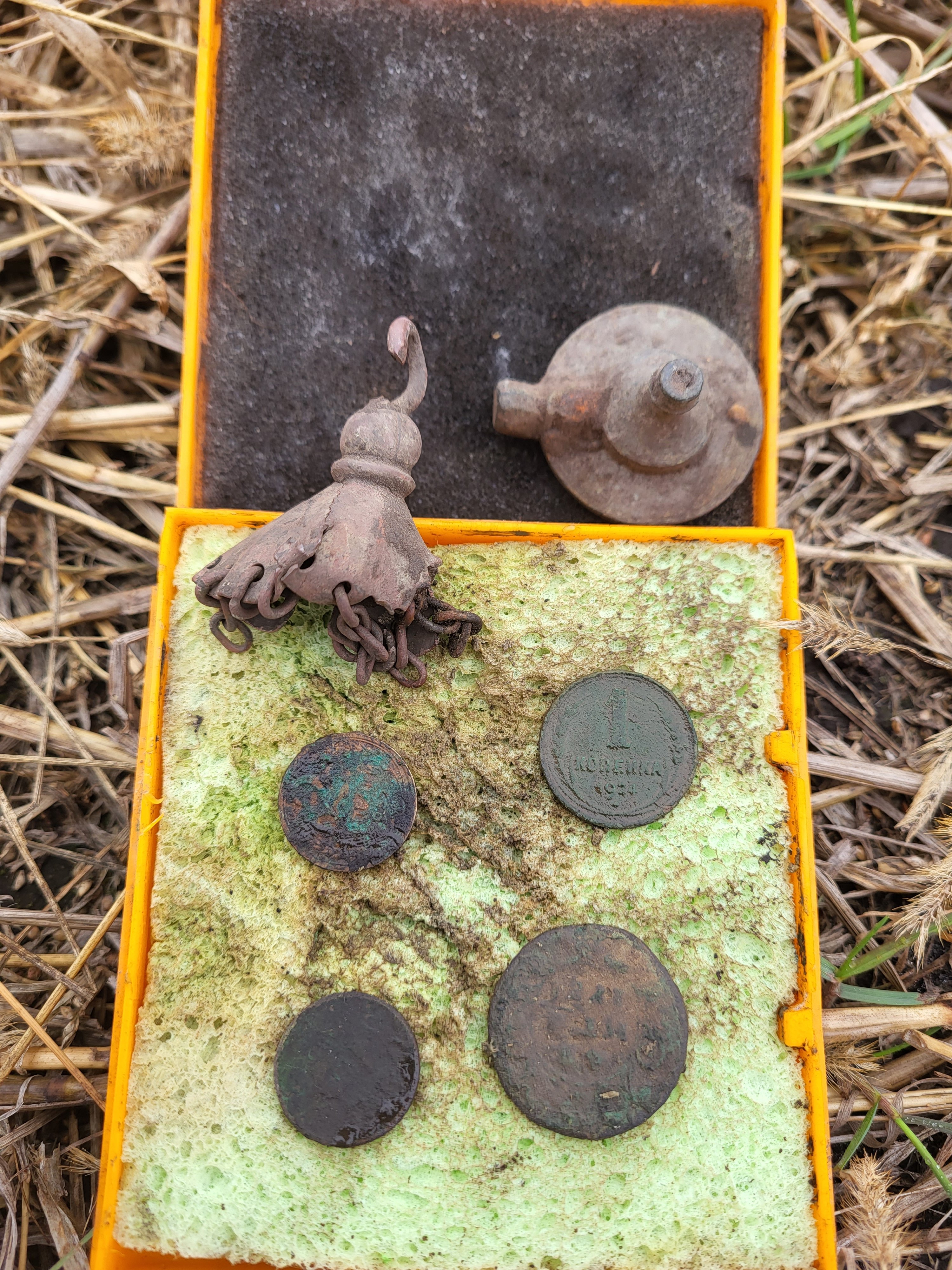 Можливо, це були мідні накладки-щічки на руків'я розкладного ножика.