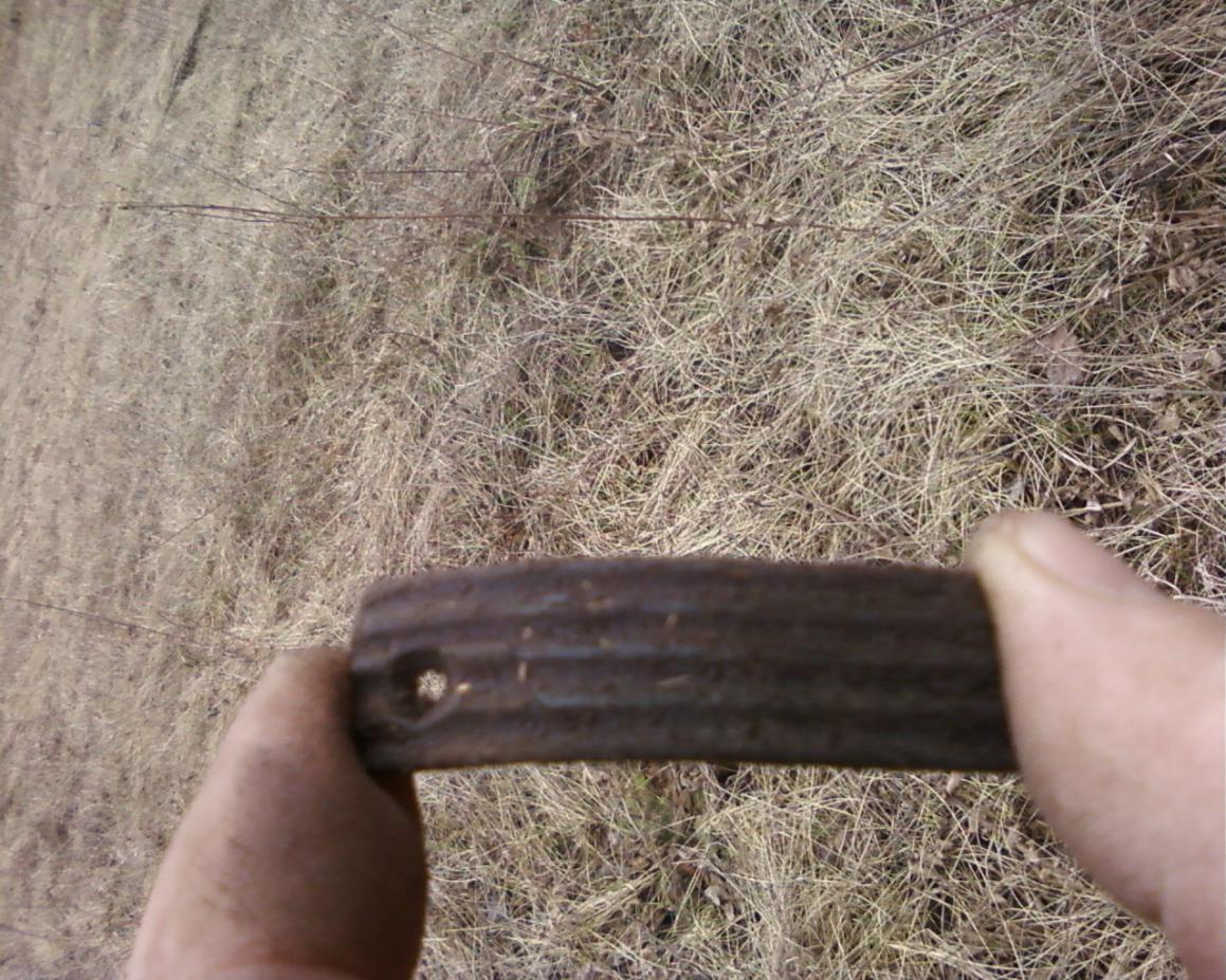 на 4 фото (на ладони) - что это. я находил похожее, такая же полукруглая бляха, только сбоку не стержень, а пластина с заклепками, как-будто там был кусок кои или т.п.Подскажите?:beer: