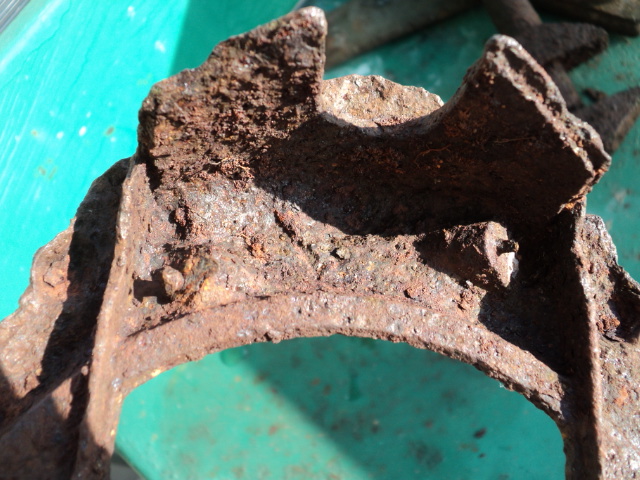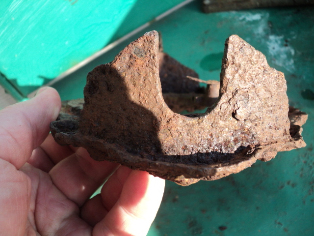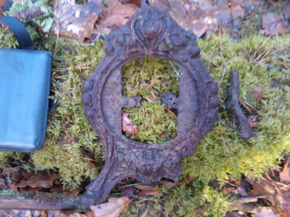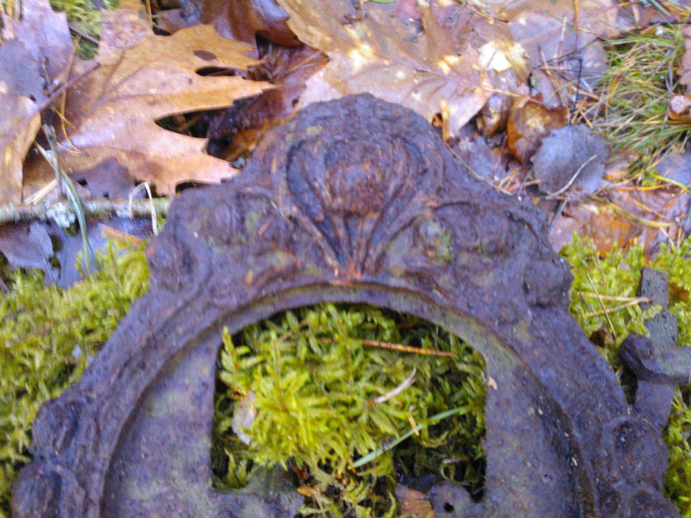 Вот вырыл в лесу сегодня такие железо и чугун. Первые наверное от печки. Потом непонятная рамка, украшенная узором из ландышей и пр. Может она от часов? И последнее какая-то большая дуга. Не представляю для чего она.