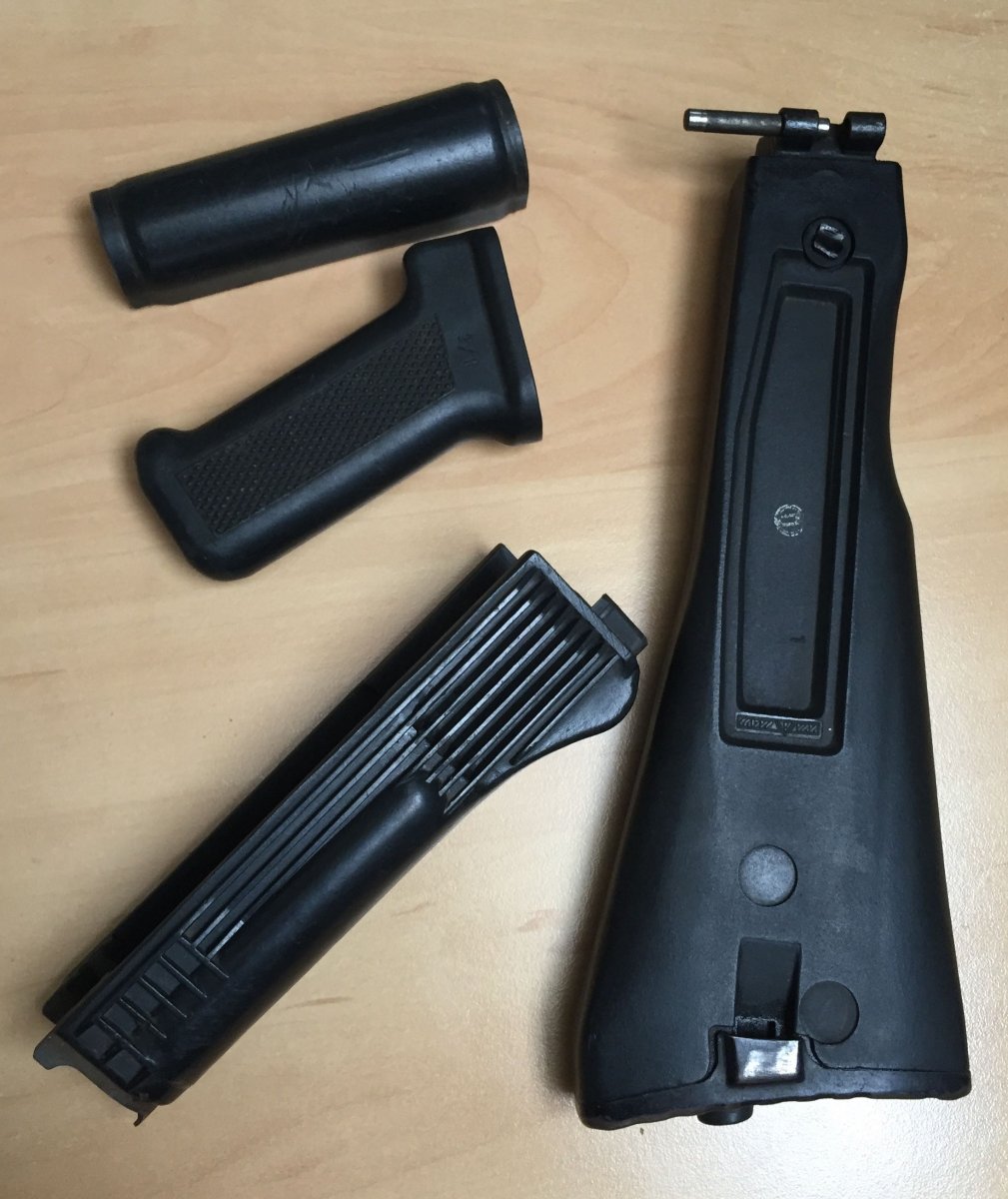 Комплект черного пластика на сайгу или АК74. Состояние по фото, на "четверочку", есть небольшие следы эксплуатации. Приклад с ушами под саежную ось, сама ось в комплекте. 500 грн