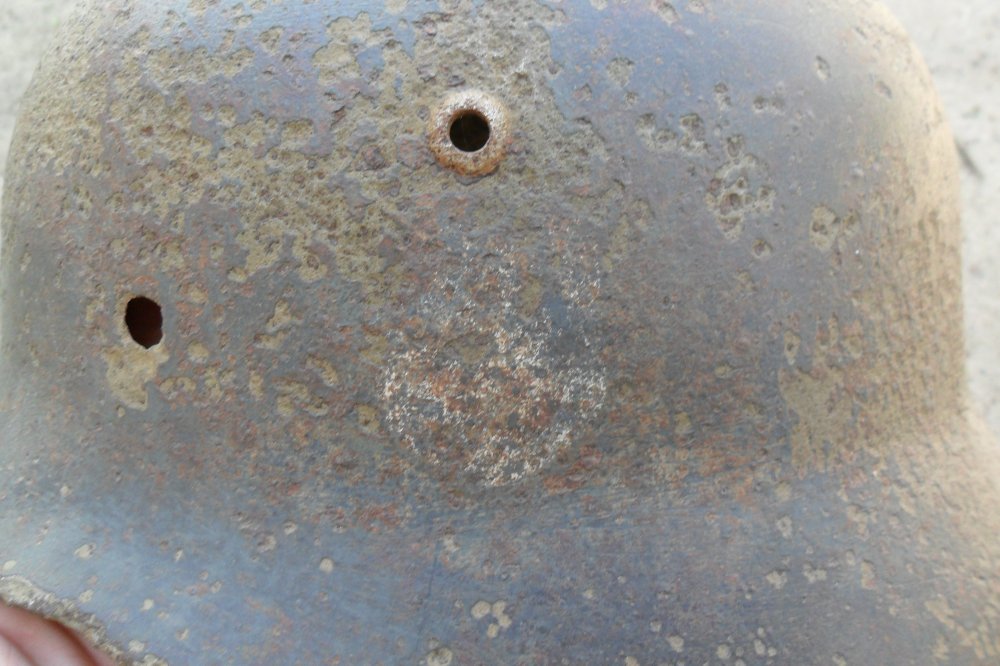 По поводу металла. После тчательной чистки я его покриваю изобильно преобразователем ржавчины Тамак. Так покрываю чтоб в каждый изъян попал, через минуты две вытираю. У металла хорошый цвет и не идёт больше ржавчина. Как пример каска, одна из моих. Хотя уверен есть люди которые думают совсем противоположно, рас нет краски , значит это исходник.