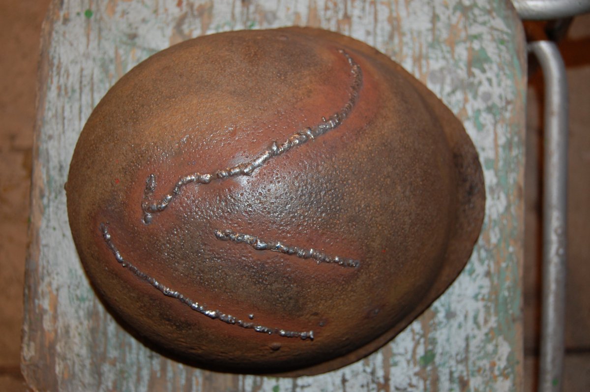 Еще вопрос - кусок каски по трещине немного смещен. Как его выровнять? Попробовать подрихтовать перед сваркой? Или при приварке точками?