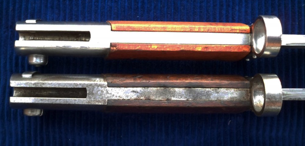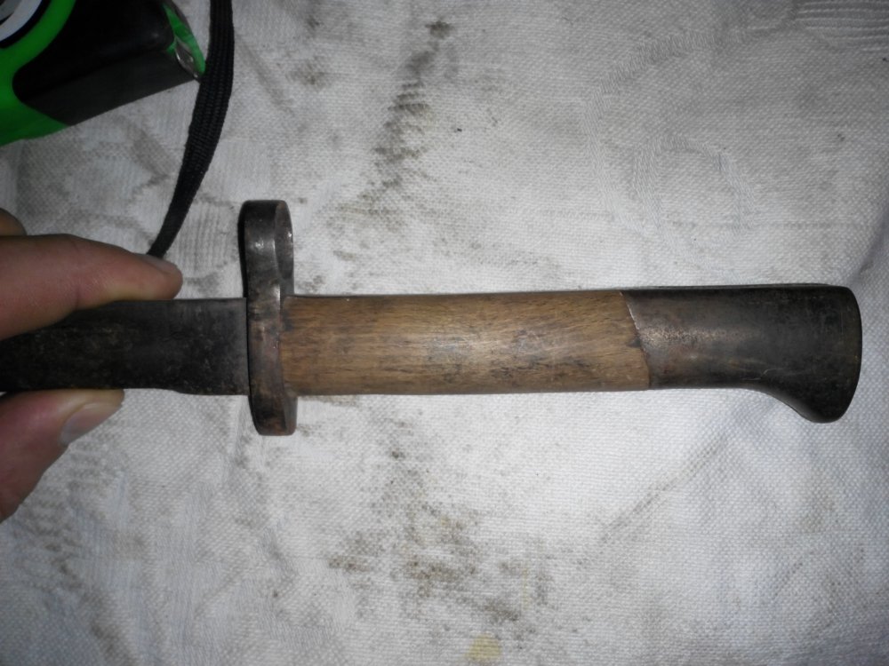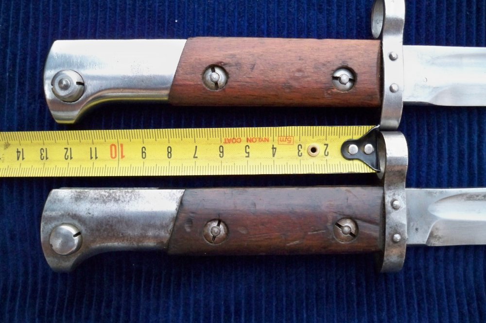 Фото з размерами,вот два типа иранского штыка образца 1898/29 года. Но самый главный размер в этом споре, это длина шомпольного канала равен 98 мм.(чуть больше половины рукояти) на всех других похожих штыках шомпольный канал доходит до конца рукояти тоесть до крестовины. Так что думаю в теме безоговорочный Перс,то есть иранский штык образца 1898/29 года.