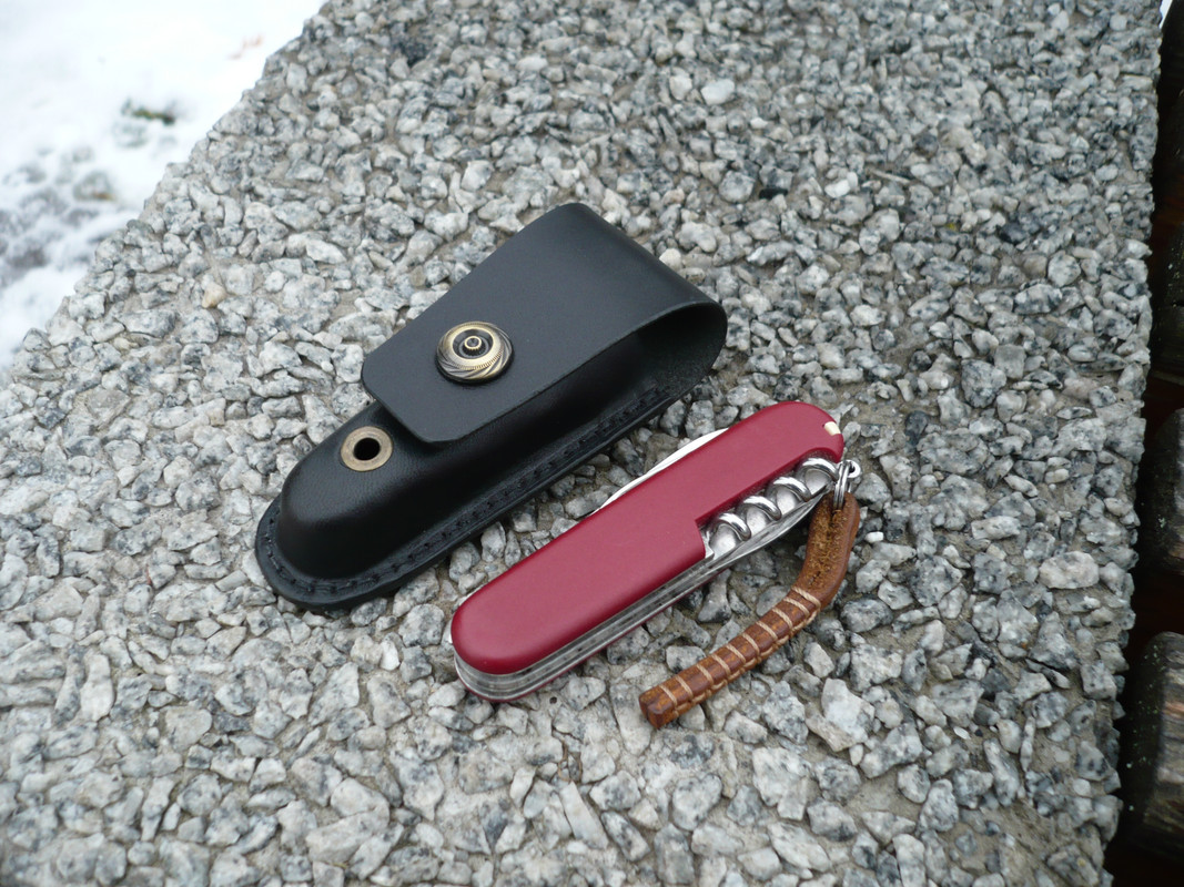 Чехол для ножа victorinox 2-3 уровня ( camper ,compact ,climber, climber wood, spartan, tinker , hiker, super tinker, sportsman ; 84-91 мм в сложенном состоянии, толщиной до 19 мм ). Чехол носится на ремне шириной до 50 мм. Клапан на застежке с покрытием антик. Кожа растительного дубления (производство Италии). При обработке использовалась морилка и краска IEXI, цвет черный. Урез обработан средством tokonole (Япония). Финишное покрытие - крем kenda farben antiqua super. Прошит вощеной нитью galaces 0,45 мм. Темляк в подарок. Ручная работа. Цена 350 грн.