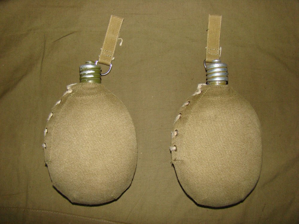 Продам чехлы фляги на 41 год на реконструкцию РККА. Продам вместе с флягами. На левой клеймо 1951, на правой 1956. Состояние - идеал Цена: 80 грн за штуку.