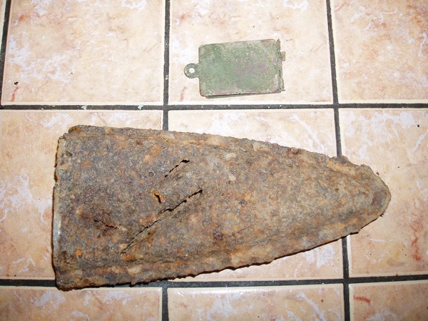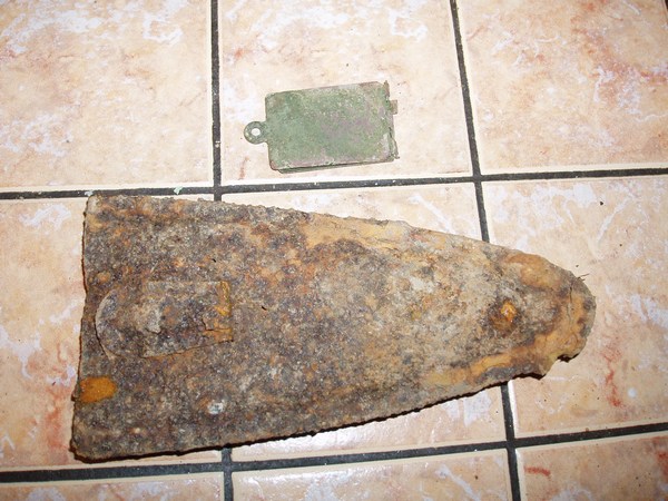 Прошу помощи у камрадов . Было сие найдено на венгерских тыловых позициях , меня терзают смутные сомнения - от чего сей девайс ( смертник в качестве сравнения , там же наиден ) .Такое ощущение , что это от ножен меча БАГАТЫРСКОГО , шутка , на другой стороне крюк прип.делан , наверное , цеплялся куда то ... По технологии изготовления похож на ножны эрзацштыка ( из двух половинок )....
