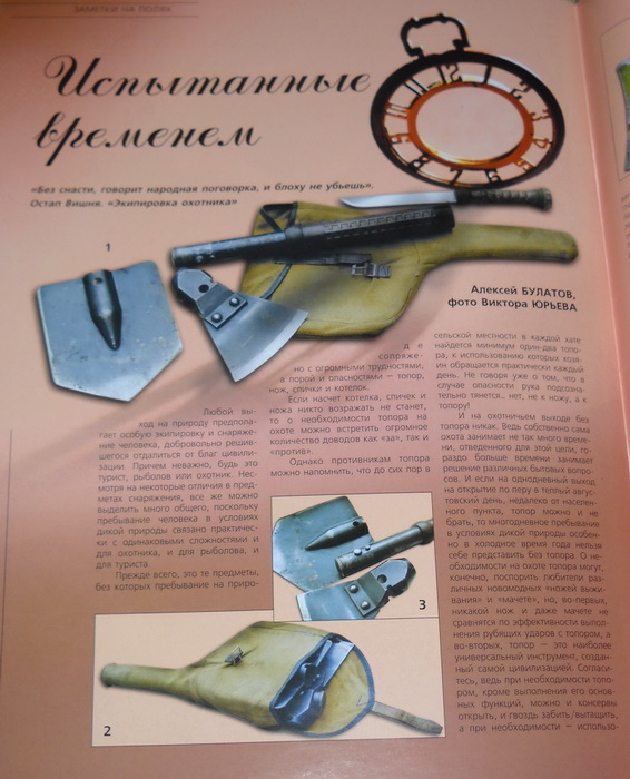 Не знаю, что в этом комплекте хорошего - топор слишком тяжелый для своих размеров, лопатка - порнография, нож - пожалуй да, неплохой. Плюс разбалтывающаяся защелка... У меня в хозяйстве такой же - топор пришлось заварить, опасно.