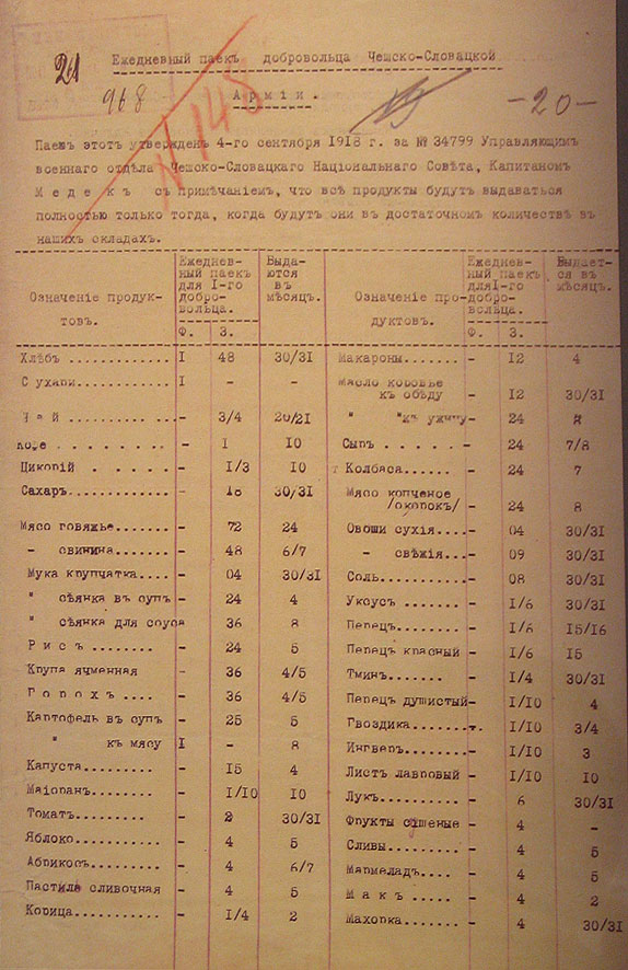 Паёк белочеха, 1918 год