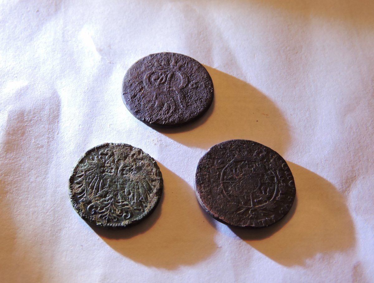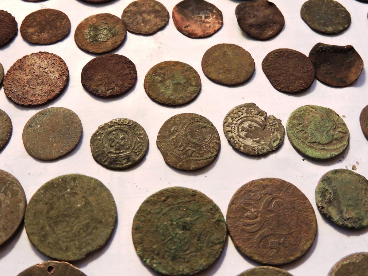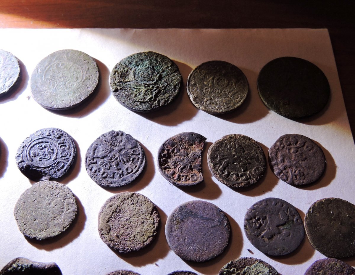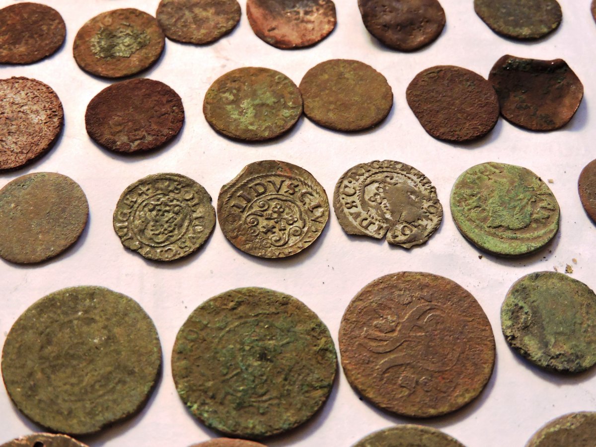 Самое первое фото ливонский солид Кристины, второе геллер (Австро-Венгрия) , 2 монеты Станислава Августа Понятовского, последнее - солиды Яна Казимира, Кристины, гроши Понятовского.