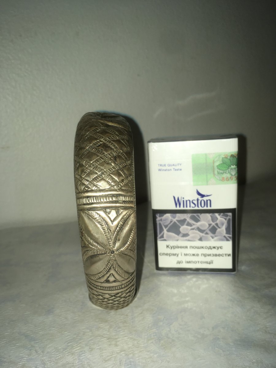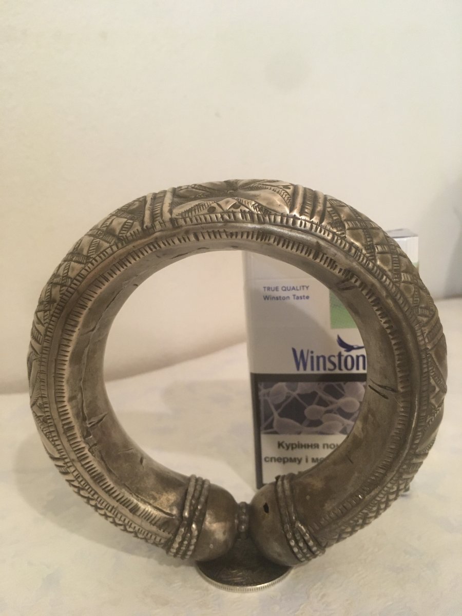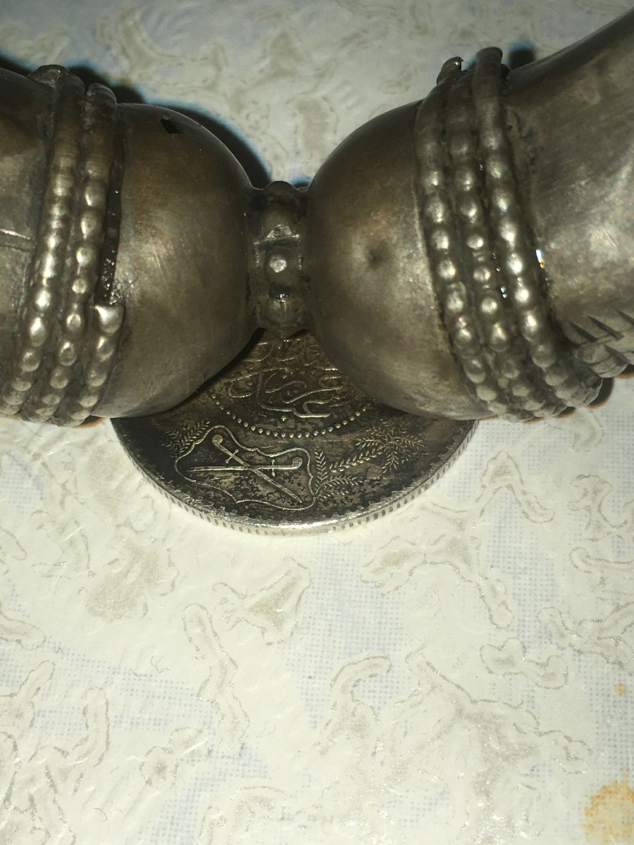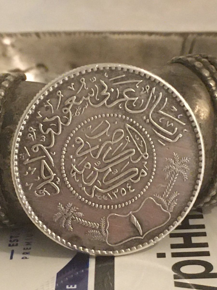 Доброго! 1935 год (1354 год Хиджры). А вот, похоже, и Ваша монета https://www.ebay.com/itm/SAUDI-ARABIA-AH-1354-1935-Riyal-WC77651/293342494266?hash=item444c933e3a:g:BUoAAOSwFuJd1zy З.Ы. Имхо, браслетик с Ближнего Востока, но СССР там тоже в свое время со многими дружил. С уважением,