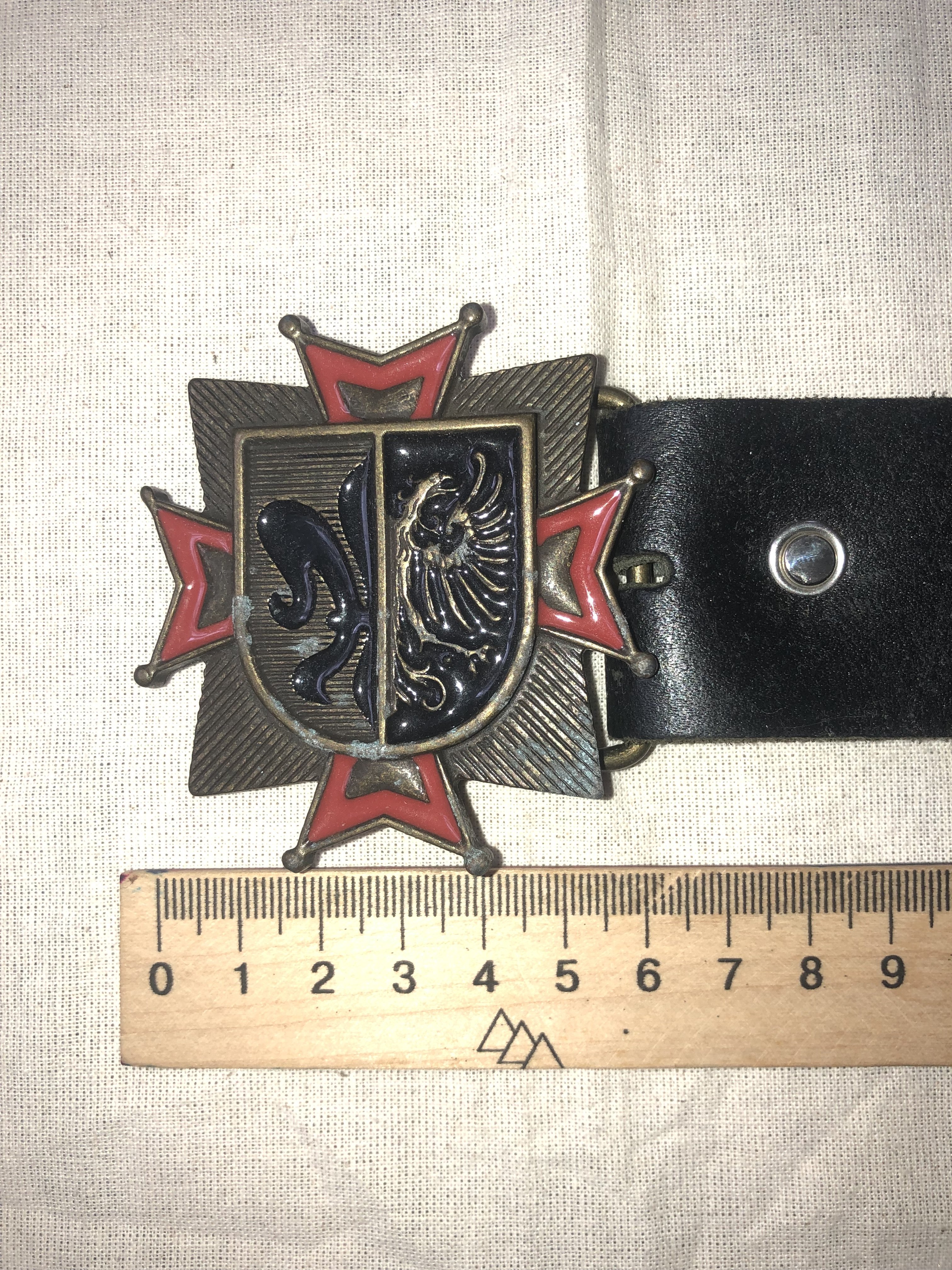 Вітаю. Натрапив на пряжку у вигляді мальтійського хреста з геральдичним щитом, на якому зображені навпіл лілея та орел. Цікавить її приналежність... Заздалегідь вдячний!