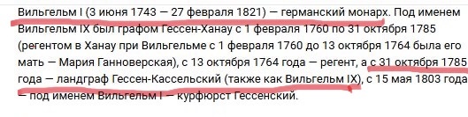 Ніякого Вільгельма I в 1787 році не існувало. Майбутній імператор Німеччини тоді ще не народився, а майбутній курфюрст Гессенський став таким тільки в 1803 році.