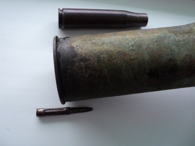 Поддерживаю камрада studentgr53. Считаю данную гильзу - гильзой от советского 76-мм артиллерийского выстрела. К головной части происходит едва заметное сужение гильзы под калибр снаряда.