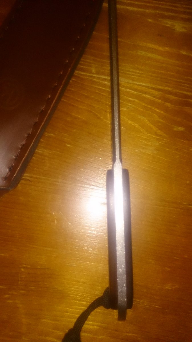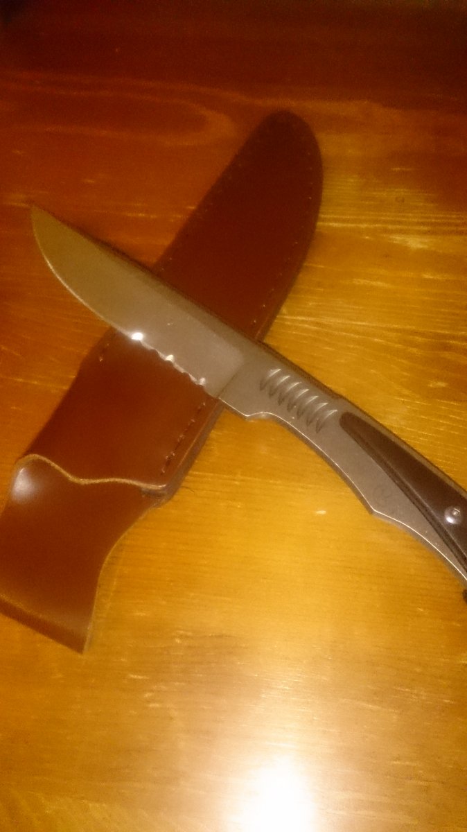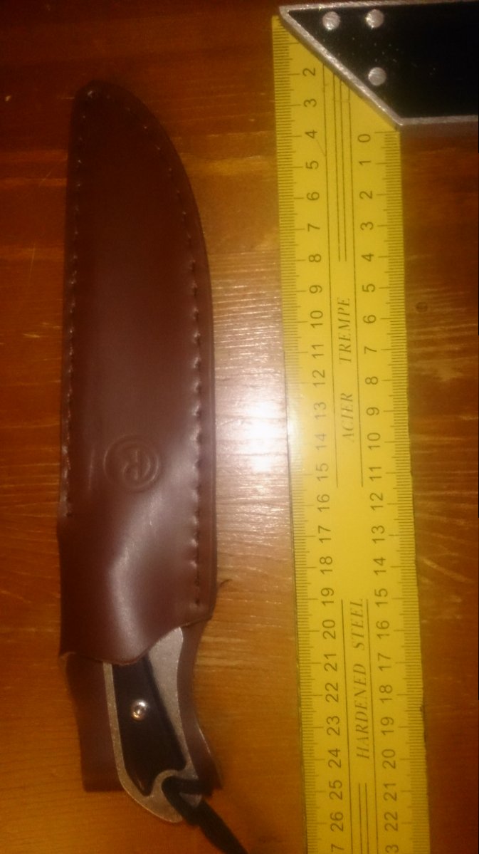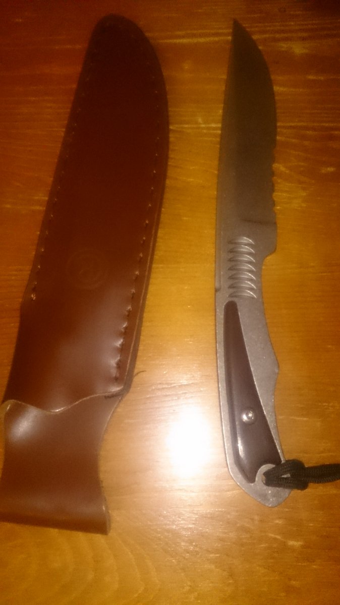 Качественная реплика на красивый охотничий нож. Технические характеристики: клинок как заявляю d2( stonewashed), длина 110мм общая длина: 224 mm толщина обуха 4.6mm на рукояти дерево (как пишут китайцы кокоболо) сам не знаю, в породах дерева не силен ножны-кожа Нож в ножнах не фиксируется. Брал один раз на природу. Ничего серьезного нож не резал. цена 800 грн.
